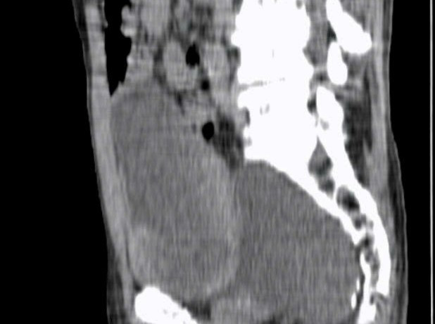 Người bệnh bị phì đại tuyến tiền liệt gây tắc nghẽn đường tiểu dưới, đồng thời có túi thừa bàng quang kích thước lớn. Ảnh BV