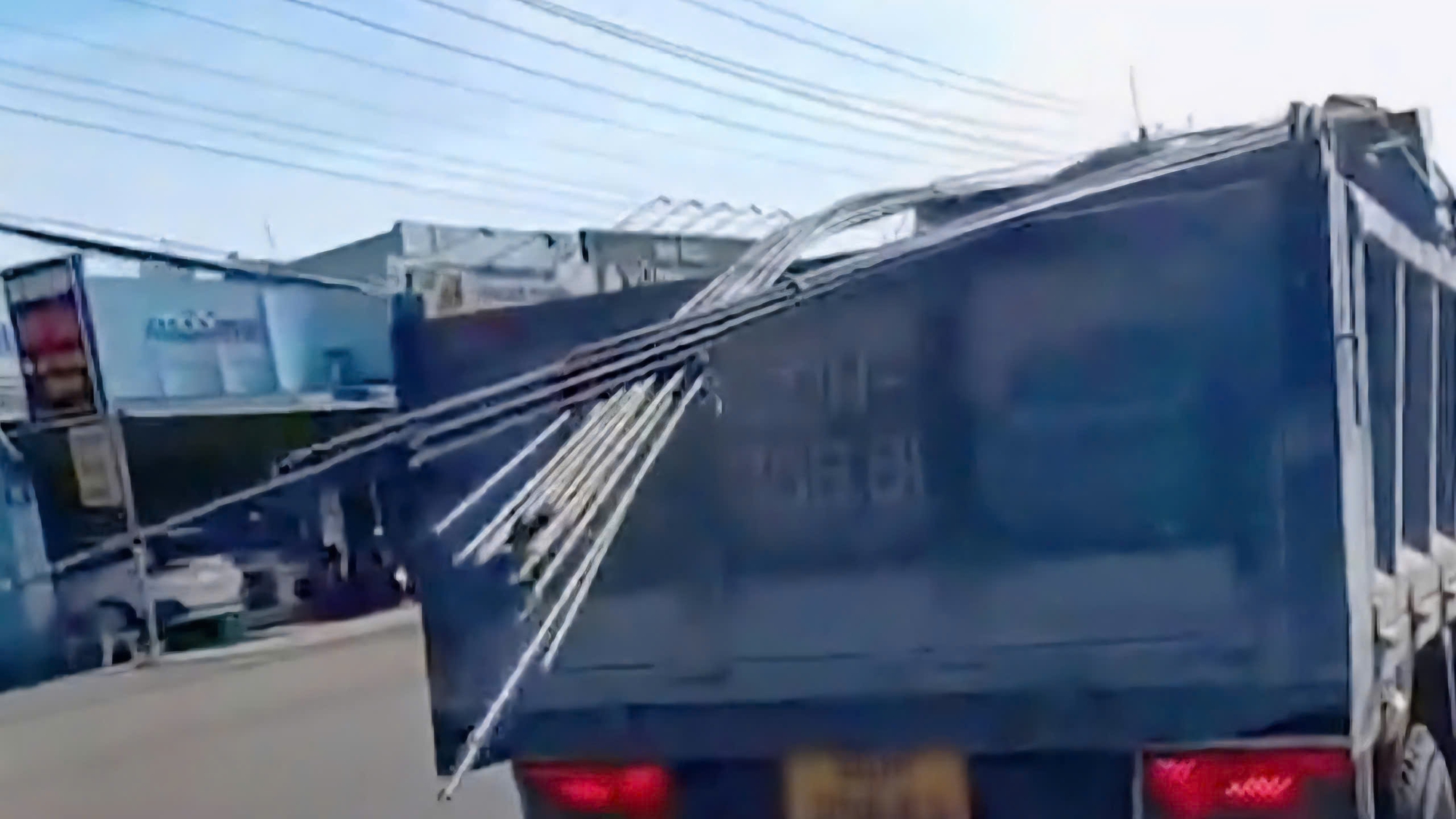 Xe tải chở hàng cồng kềnh (ảnh cắt từ clip do người dân cung cấp).