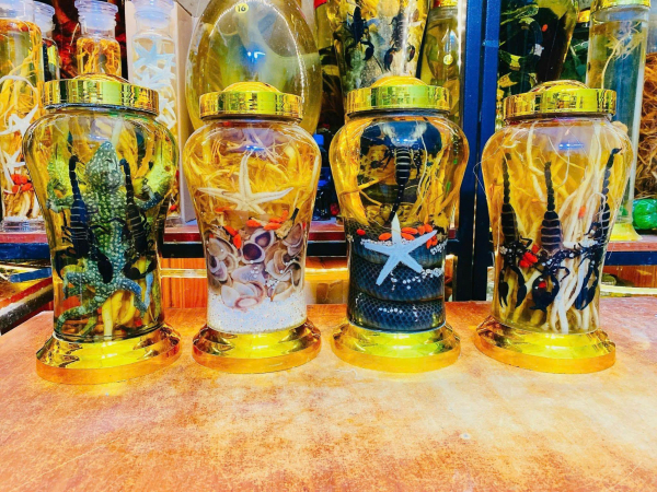 Những bình rượu ngâm động vật được quảng cáo trên các chợ rượu online dịp Tết.