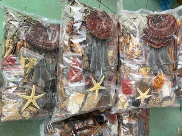 Ngoài ra, một số cửa hàng còn bán nguyên liệu để ngâm rượu, giới tiên tửu, ma men muốn ngâm thứ gì cũng có trên giỏ hàng. Tài khoản Thảo Nguyên chia sẻ, bên shop hiện bán lẻ các mặt hàng ngâm rượu như tam thất, táo mèo, đinh lăng, rễ cây mật gấu, đông trùng hạ thảo…cùng một số loại nội tạng động vật hoang dã như mật rắn, xương rắn, hải mã khô nguyên con, lộc nhung. “Những mặt hàng này bên shop luôn có sẵn và gửi nhanh cho anh chị kèm theo hướng dẫn sử dụng. Nhận hàng anh chị chỉ cần pha chế rượu ngâm cho đúng liều lượng là có thể dùng ngay”, tài khoản Thảo Nguyên hướng dẫn cách mua và sử dụng rượu ngâm.