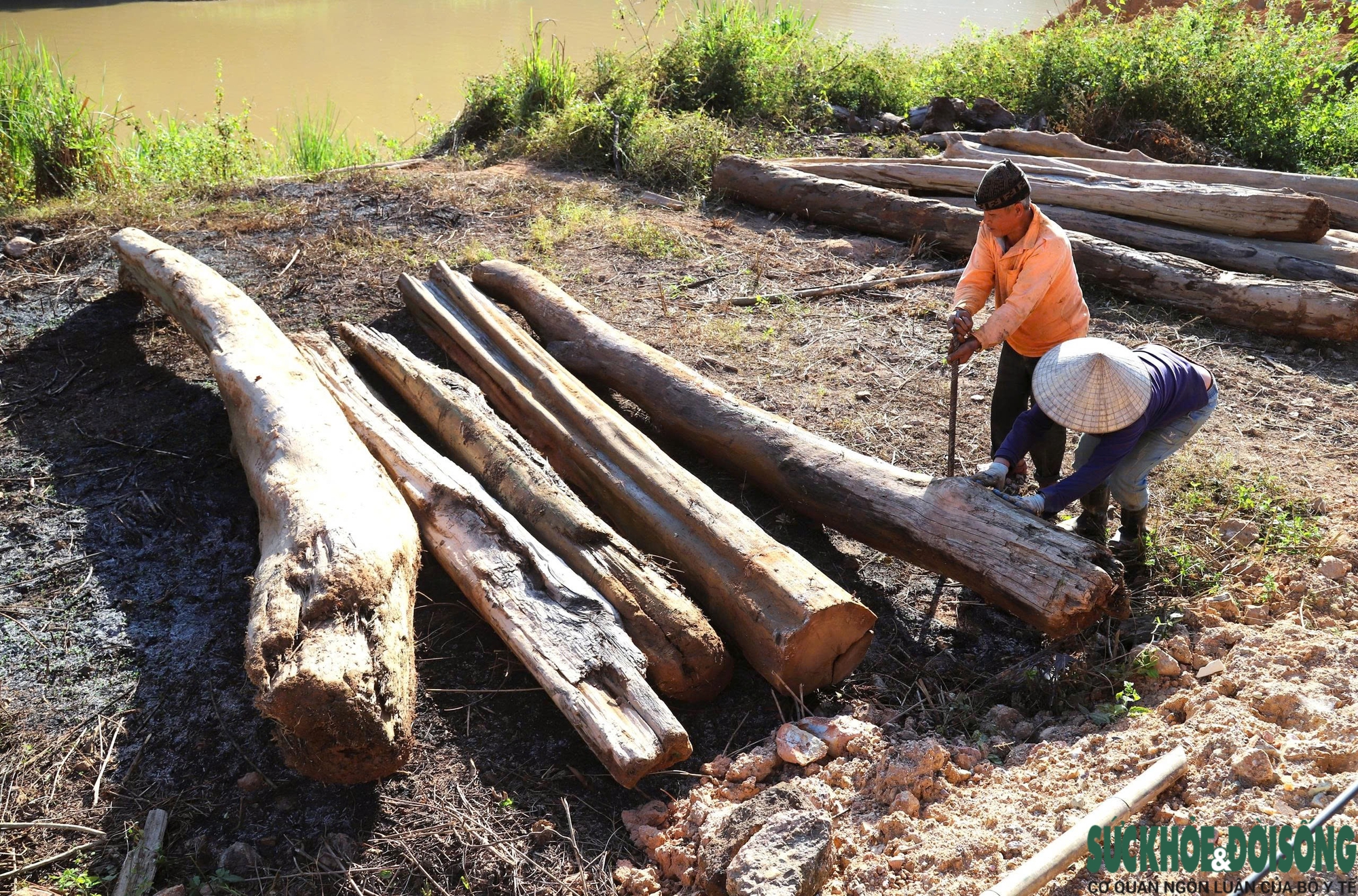 Vài tháng trở lại đây, bà con sống dọc hai bờ Nậm Nơn lại rủ nhau xuống sông vớt củi gỗ, tận dụng làm nhà cửa, chuồng trại hay tích trữ cho mùa đông. Mỗi chuyến đi thường kéo dài nhiều ngày, tất cả đều làm thủ công như gom gỗ, kết bè, lai dắt bằng xuồng máy, rồi kéo từng thân gỗ từ mép nước lên bến tập kết.