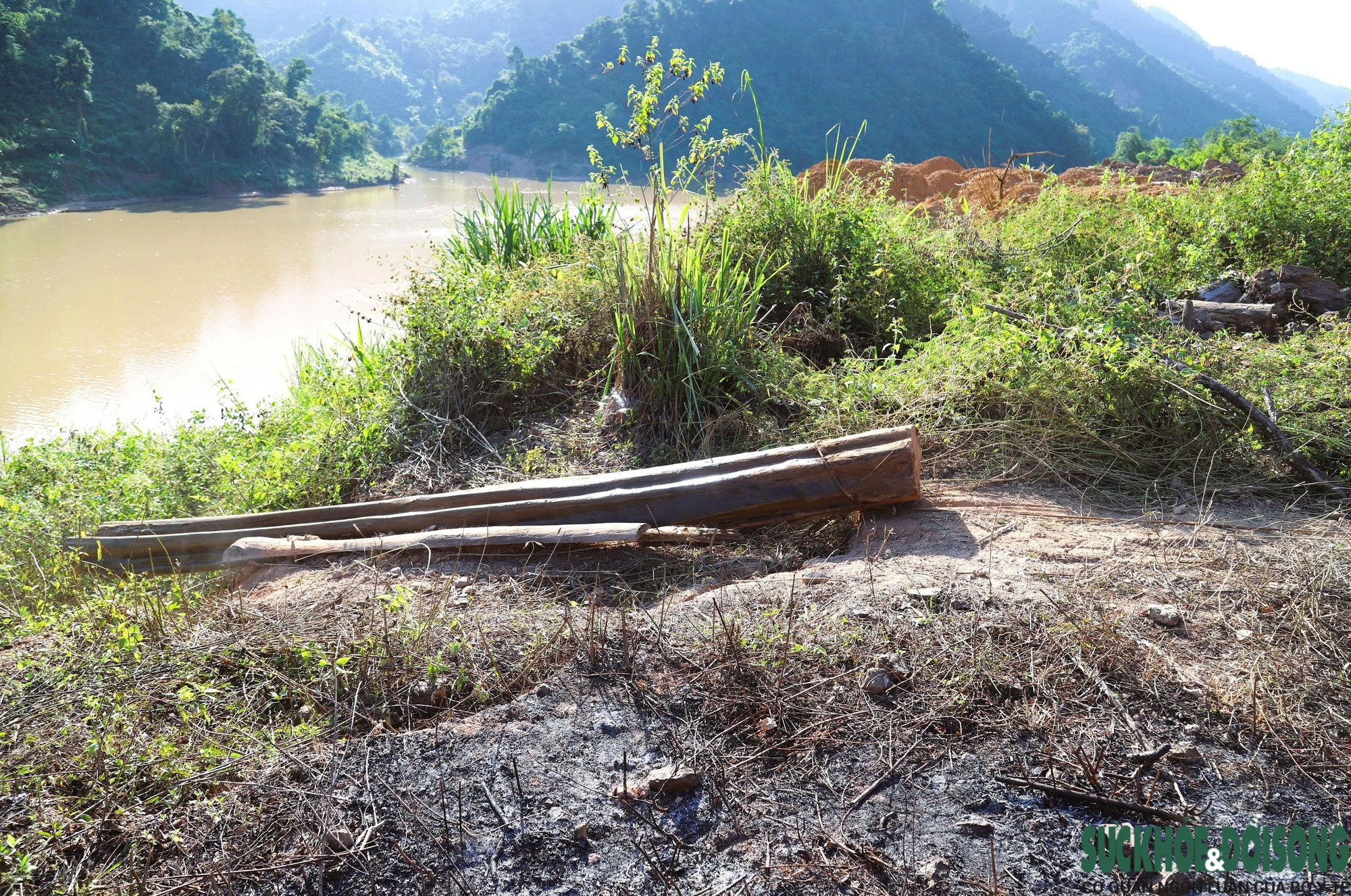 Suốt dọc bờ sông Nậm Nơn xuất hiện dày đặc những bãi tập kết gỗ tự phát của người dân.