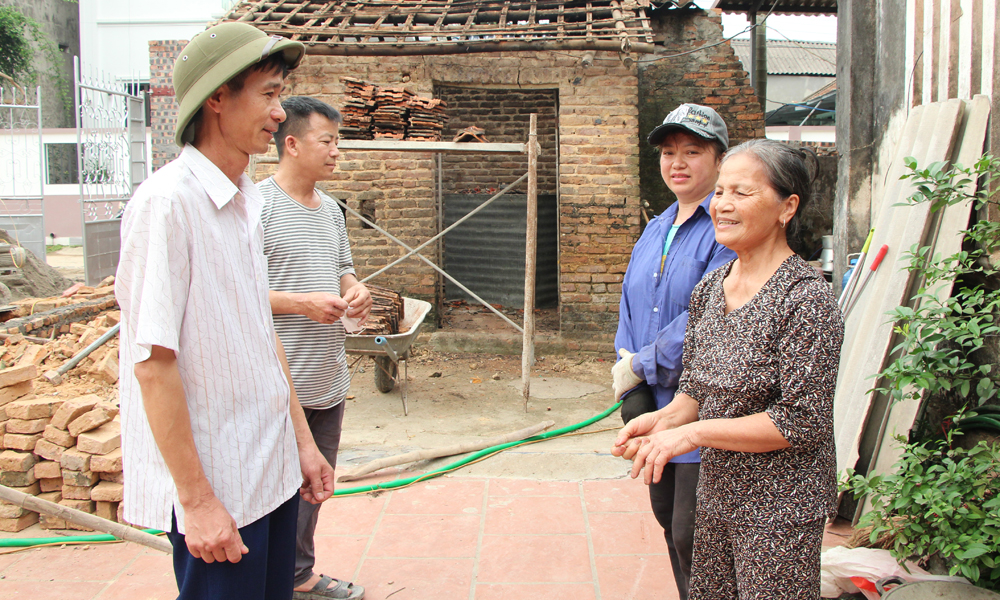 Bà Dương Thị Nhung, thôn Kim Xa (bên phải) trò chuyện với lãnh đạo thôn về việc hiến đất.