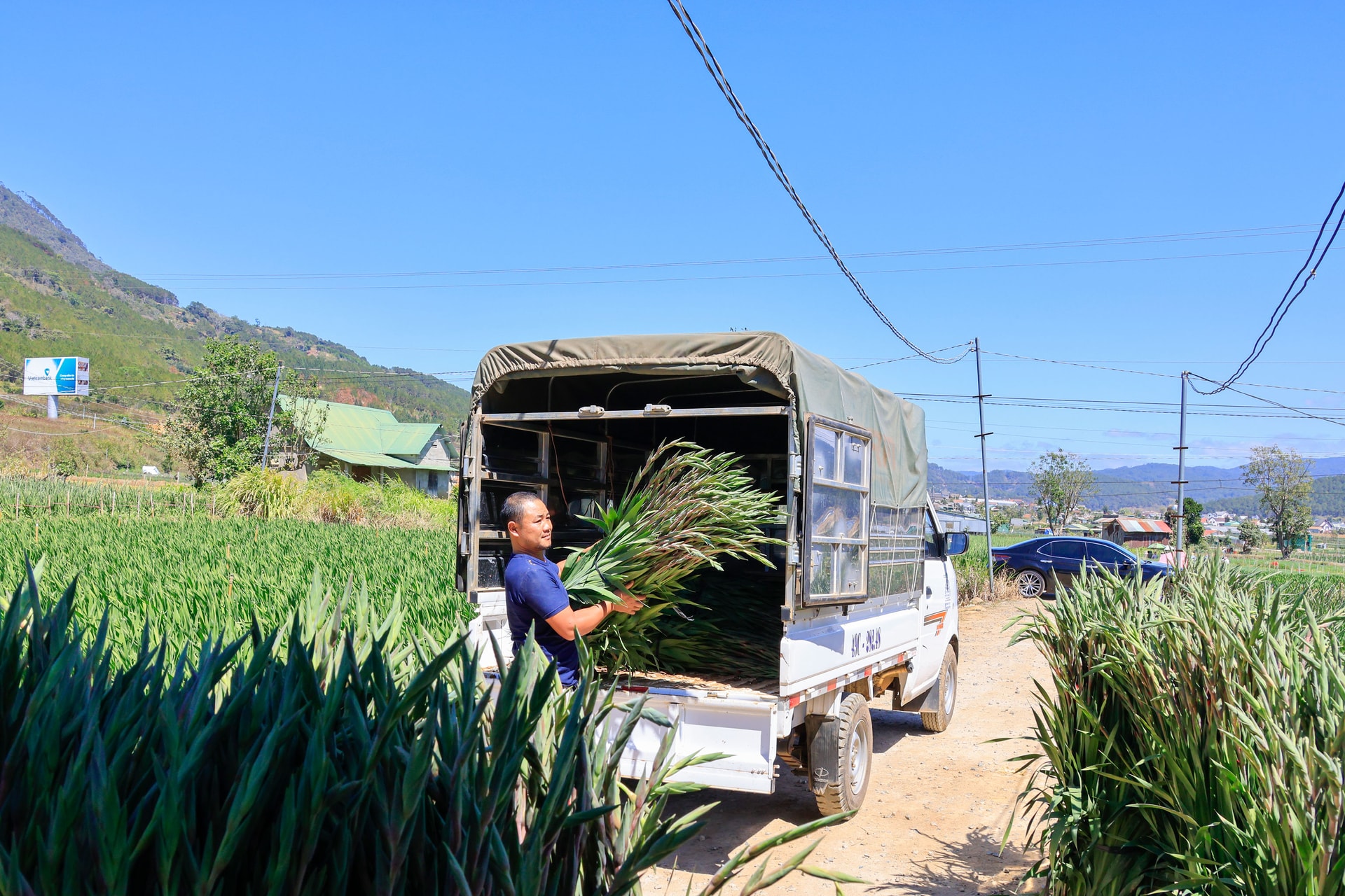 Nhờ những tuyến đường giao thông nông thôn, xe tải có thể vào tận vườn để thu mua rau, hoa