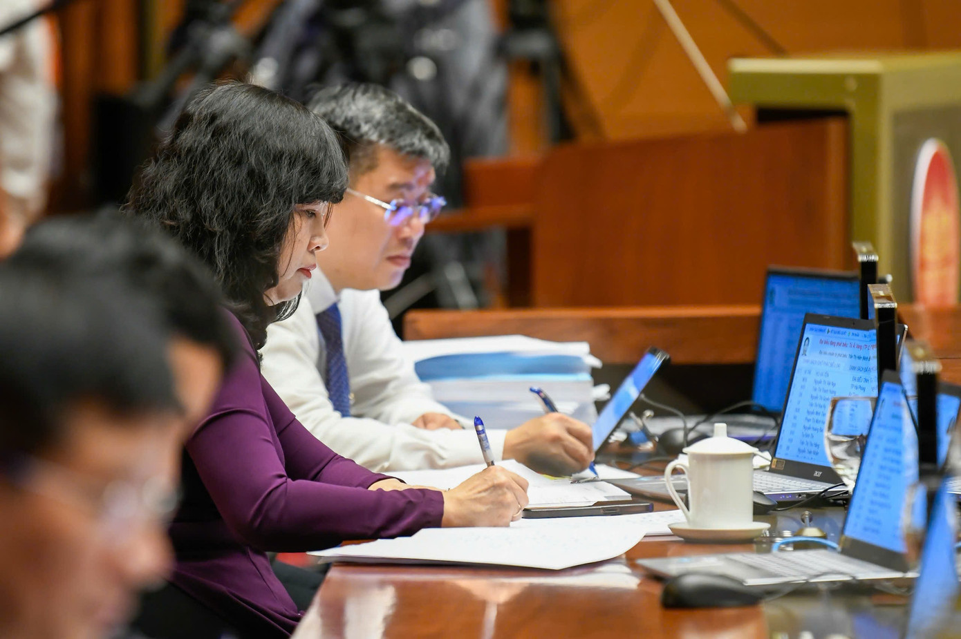 Cơ quan soạn thảo tại phiên họp. Ảnh: Như Ý
