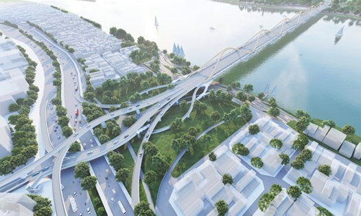 Phối cảnh cầu Trần Hưng Đạo qua sông Hồng. Ảnh: PV.
