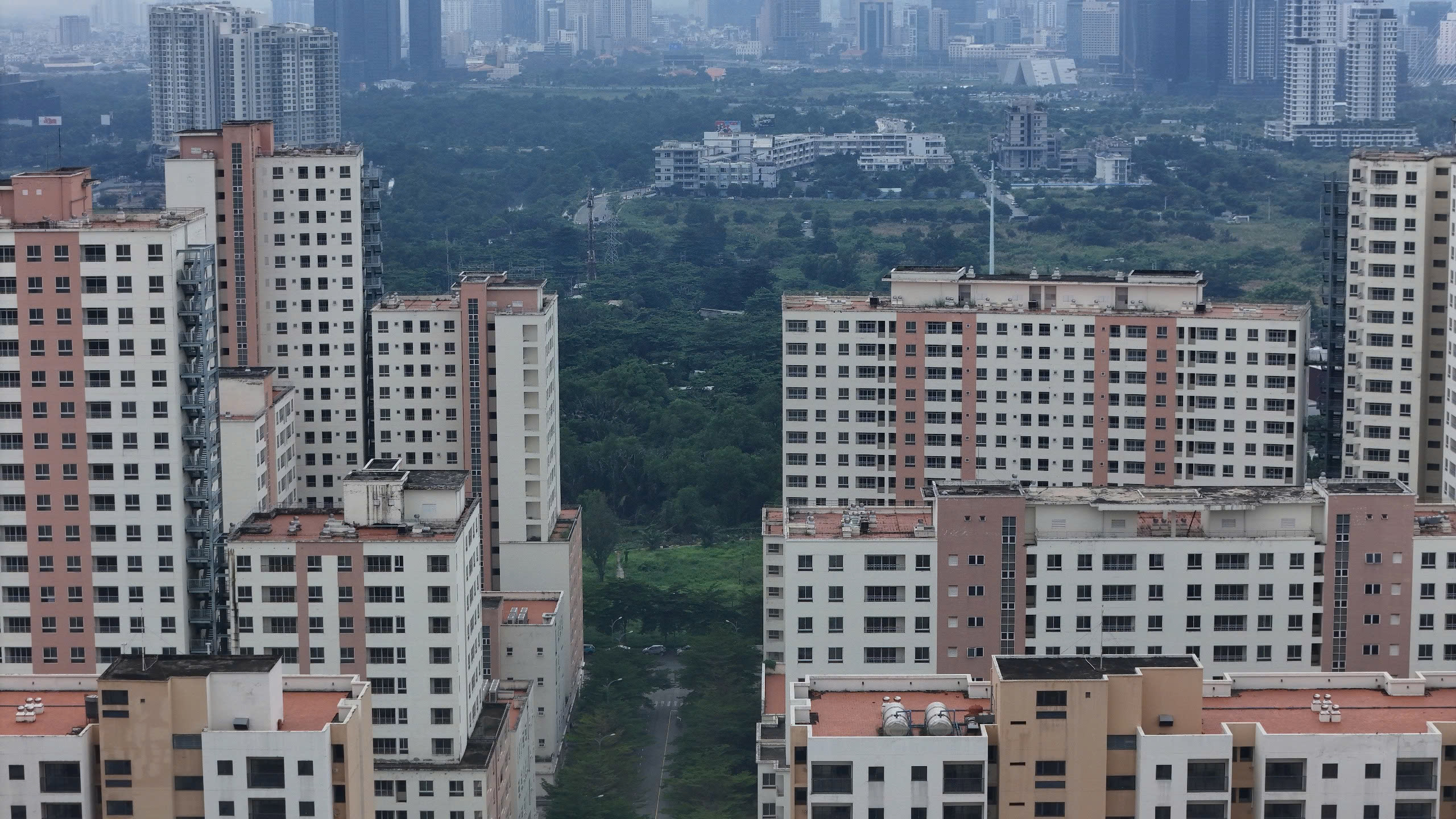 Cỏ dại bao phủ xung quanh các lô chung cư trong bối cảnh hàng triệu người lao động thu nhập thấp không thể chạm tới giấc mơ an cư dù làm việc miệt mài hàng chục năm trong thành phố.