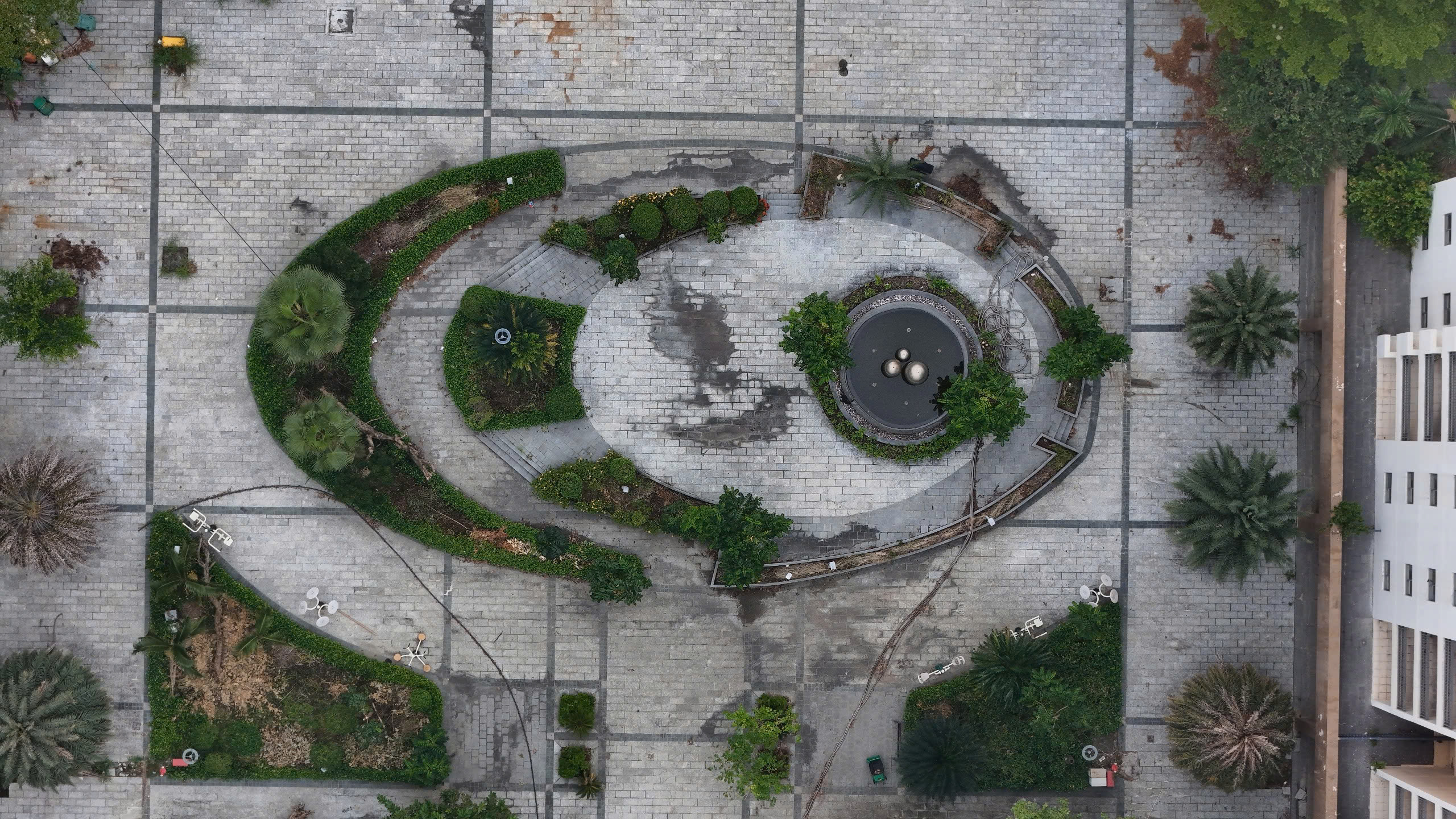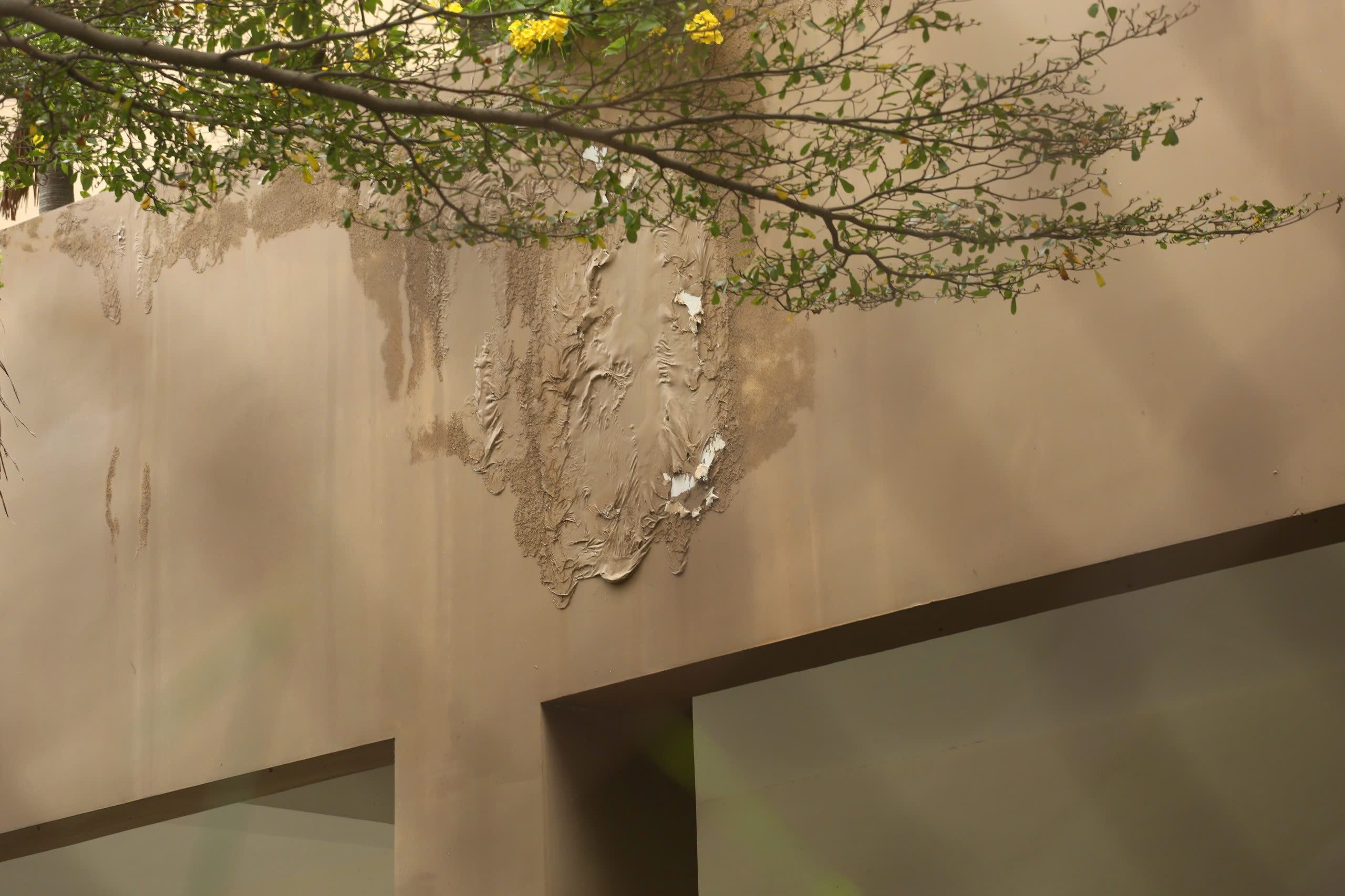 Khu vực tiểu cảnh sân chung giữa các lô chung cư đã nhuốm màu hoen gỉ bởi nhiều năm bỏ hoang.