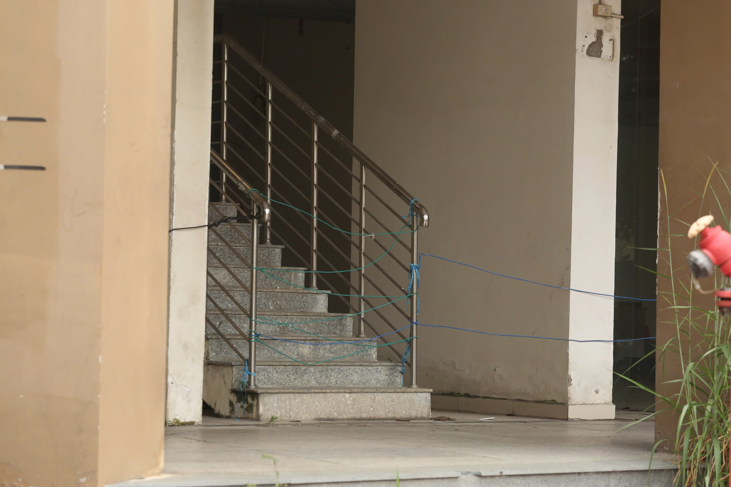 Bên cạnh cầu thang bộ được rào sơ sài bằng dây điện là những mảng tường ẩm thấp.
