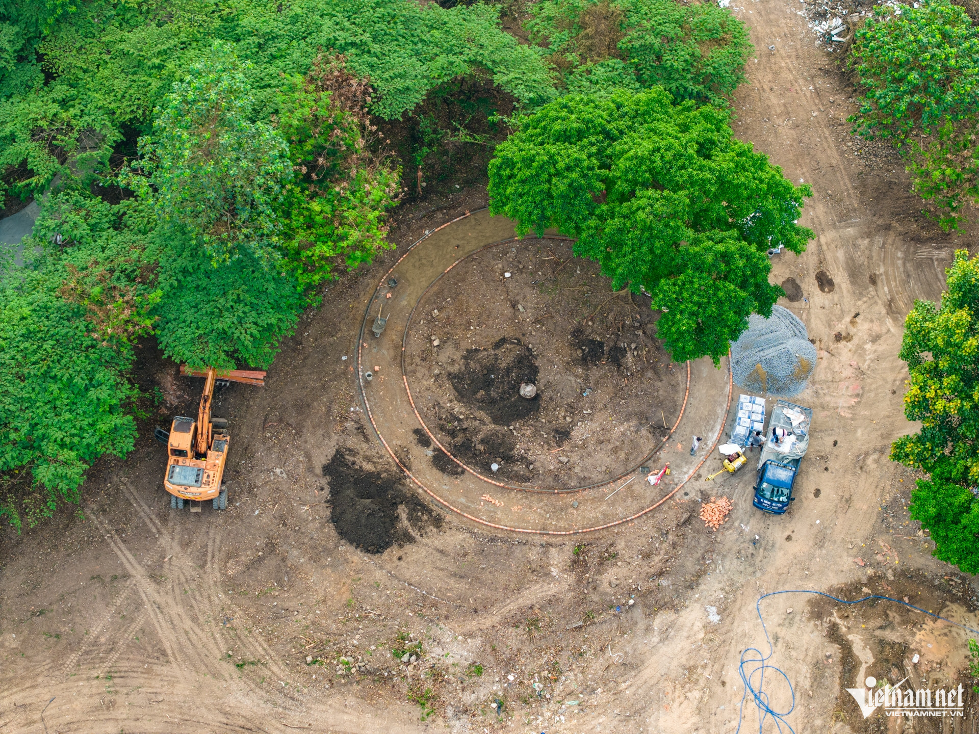 Trên khu đất này, nhiều công nhân cùng máy móc, xe cơ giới cũng đang khẩn trương dọn dẹp đất đá, cây cối.