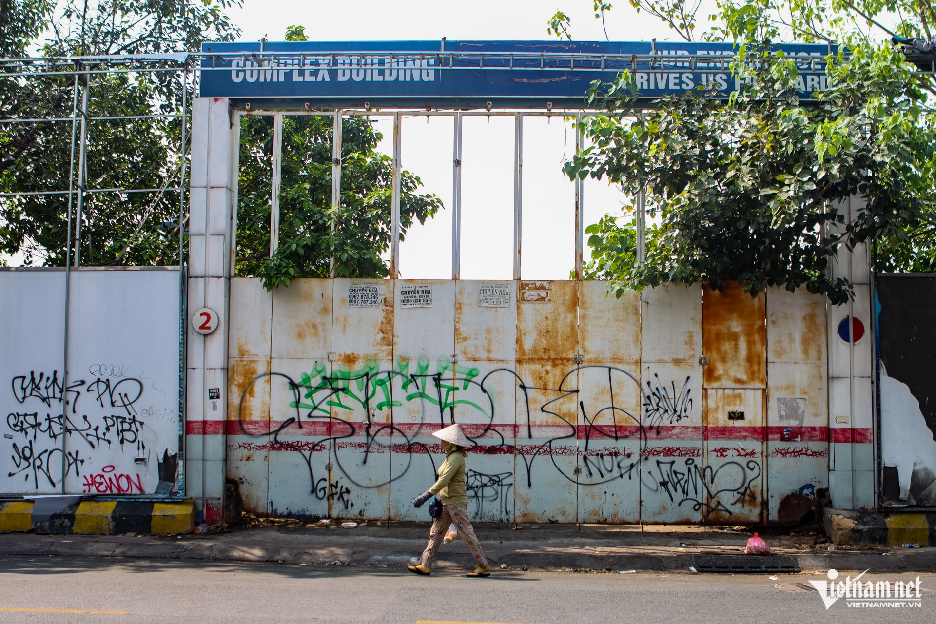 Khu đất tại số 74 Hồ Hảo Hớn - 289 Trần Hưng Đạo bị bỏ hoang, rào chắn nhiều năm; bảng thông tin dự án ở đây bị vẽ bậy, bạc màu, bong tróc.
