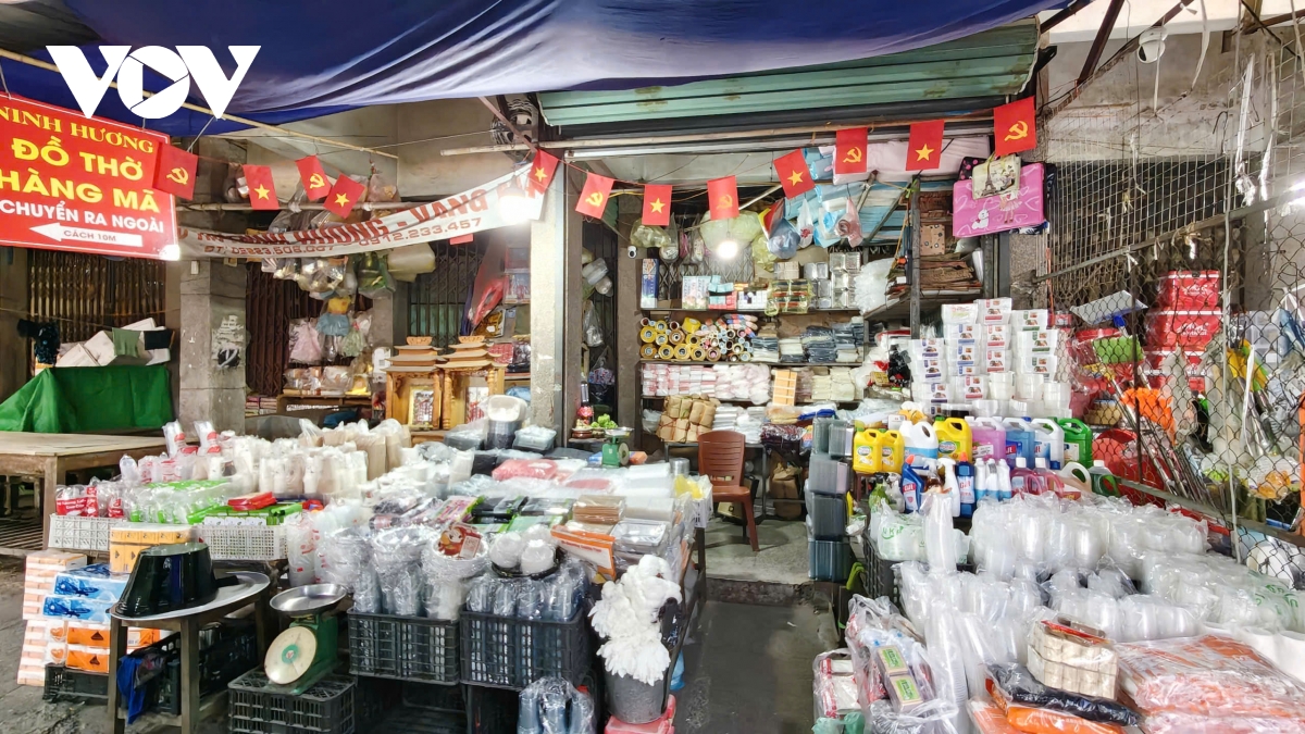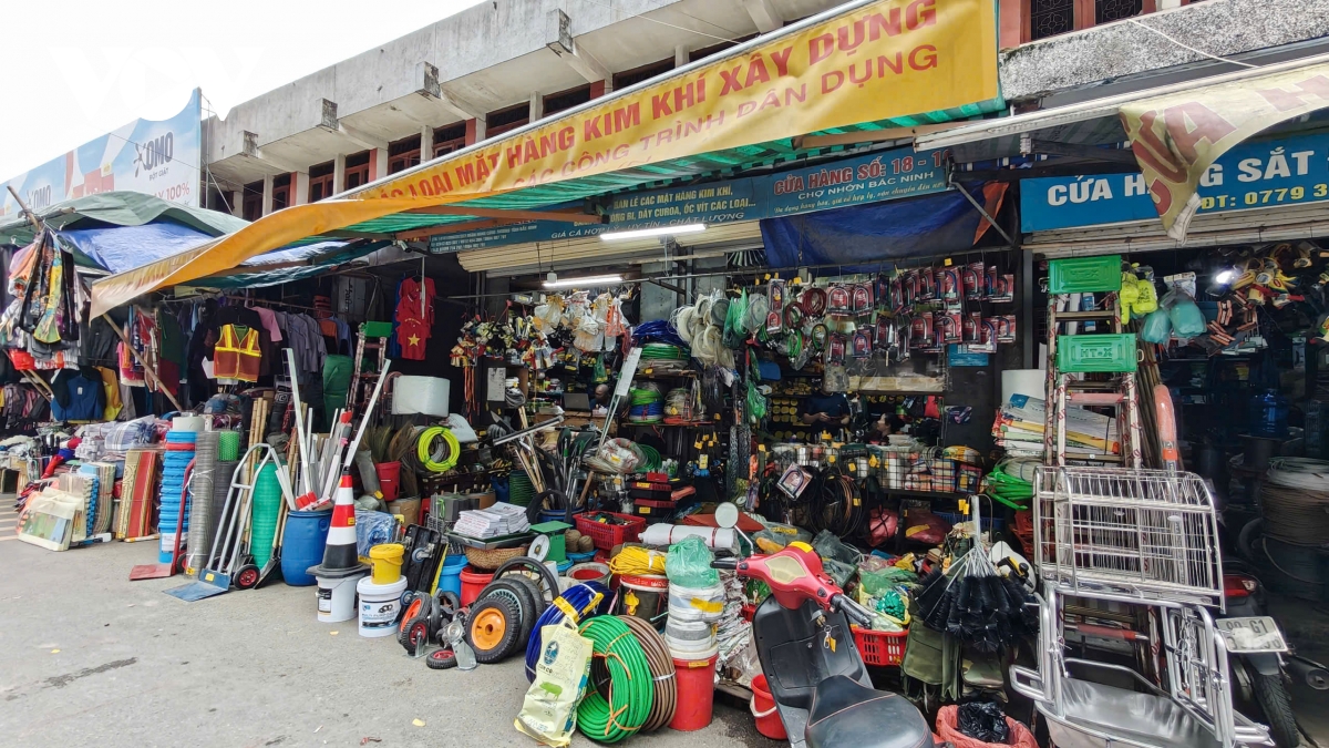 Tại chợ Nhớn, tiểu thương buôn bán đủ các mặt hàng đồ gia dụng nhằm phục vụ nhu thiết yếu của người dân phường Kinh Bắc, tỉnh Bắc Ninh.