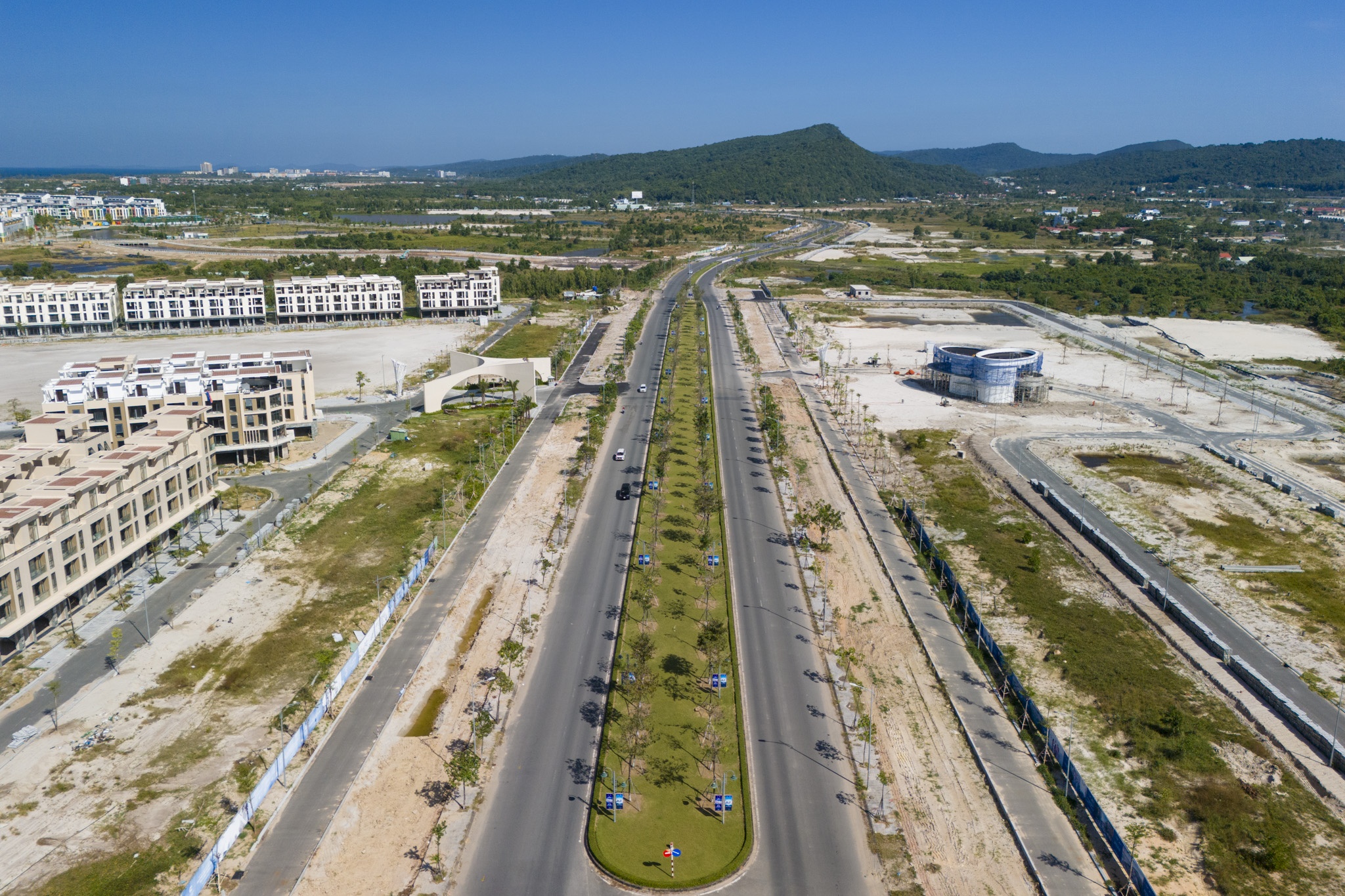 Theo ghi nhận của Tri Thức - Znews vào thời điểm cuối tháng 12, toàn bộ tuyến đường tỉnh từ sân bay Phú Quốc về nút giao đường TL45 đã hoàn thành cơ bản công tác giải phóng mặt bằng, sẵn sàng thi công nâng cấp. Trong ảnh là khu vực Đại lộ APEC dài 3 km, với quy mô mặt cắt ngang 68 m, dẫn thẳng vào Trung tâm Hội nghị APEC.