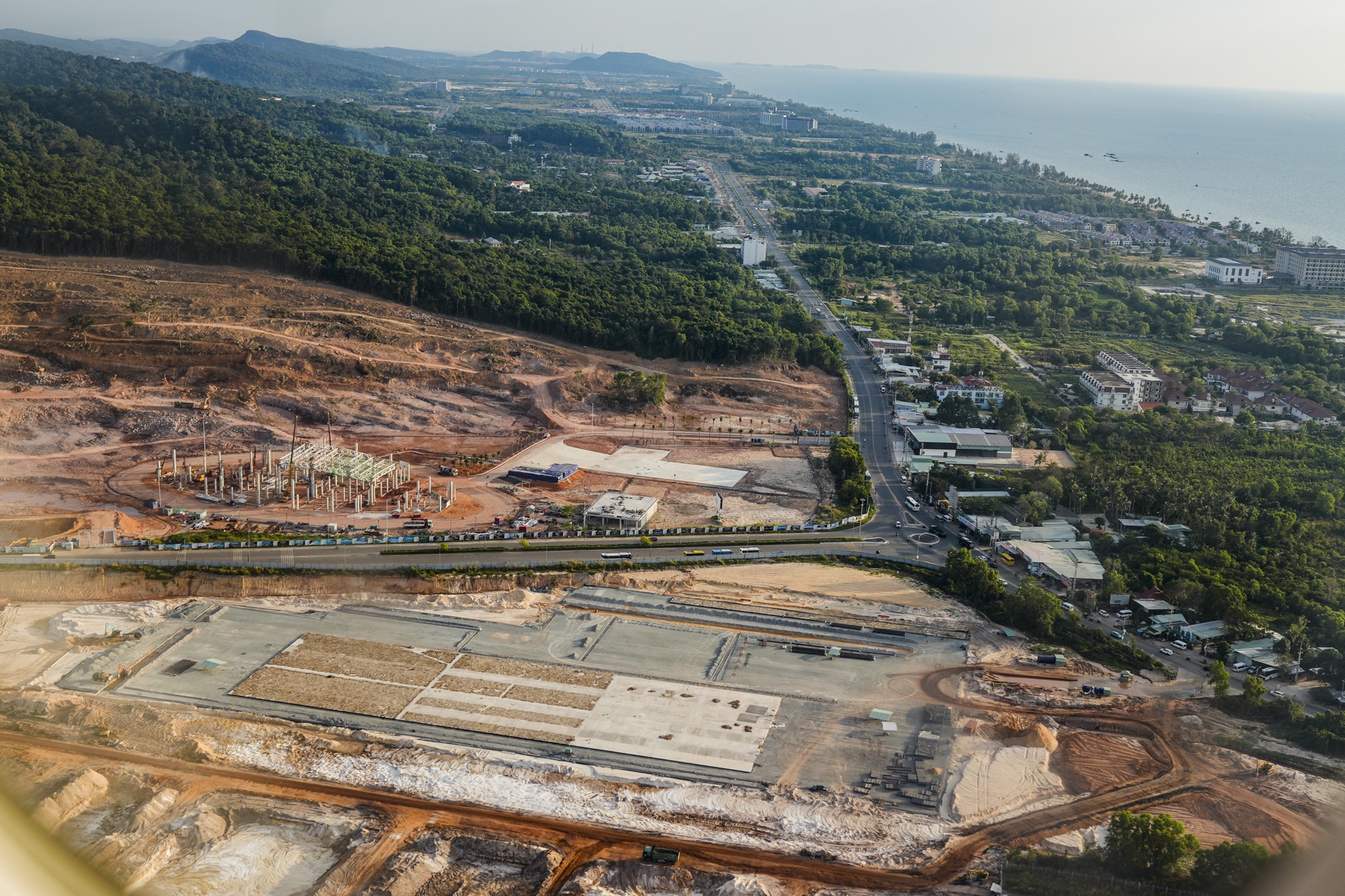 Tuyến đường tỉnh ĐT975 kết nối từ Cảng hàng không quốc tế Phú Quốc đến Trung tâm Tổ chức Hội nghị APEC. Trong ảnh là điểm đầu của tuyến ĐT975 và Xa lộ Phú Quốc, khu vực đang xây dựng công trình nhà ga VIP có diện tích 6.000 m2, nơi đón tiếp nguyên thủ quốc gia dự APEC.