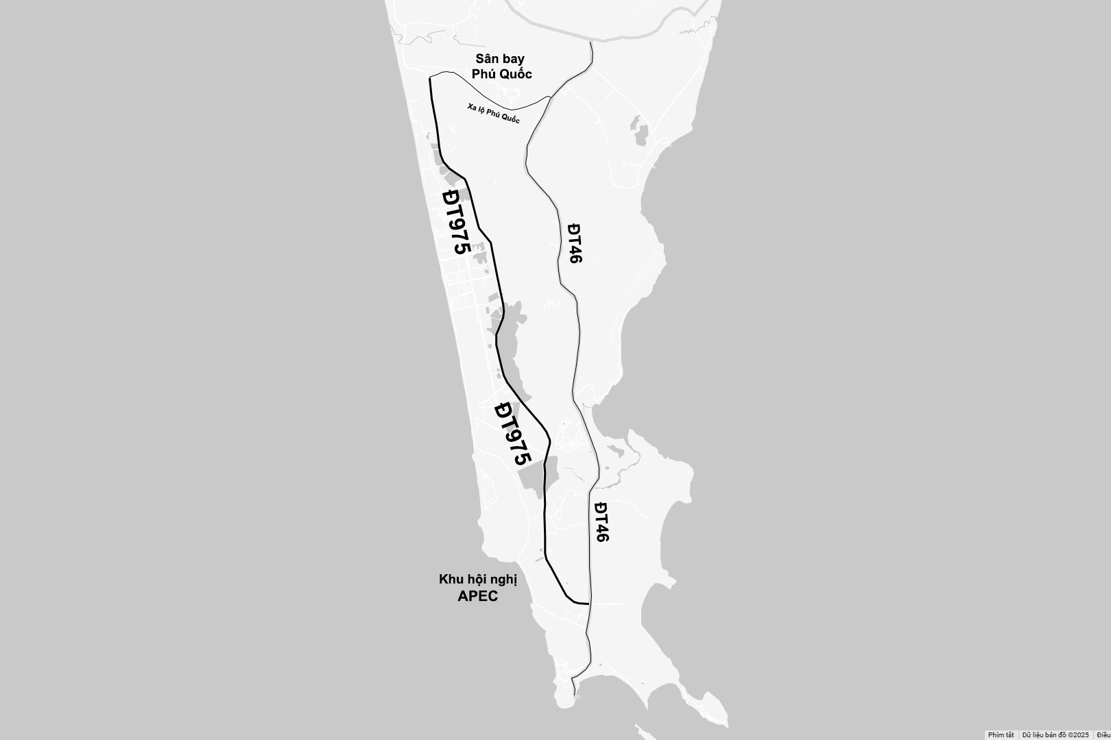 Toàn cảnh tuyến đường sắp được mở rộng 10 làn phục vụ APEC ở Phú Quốc Tuyến đường ĐT975 có chiều dài 17,7 km, lộ giới rộng 62 m, 10 làn xe đã hoàn tất giải phóng mặt bằng, sẵn sàng mở rộng lên 10 làn xe.