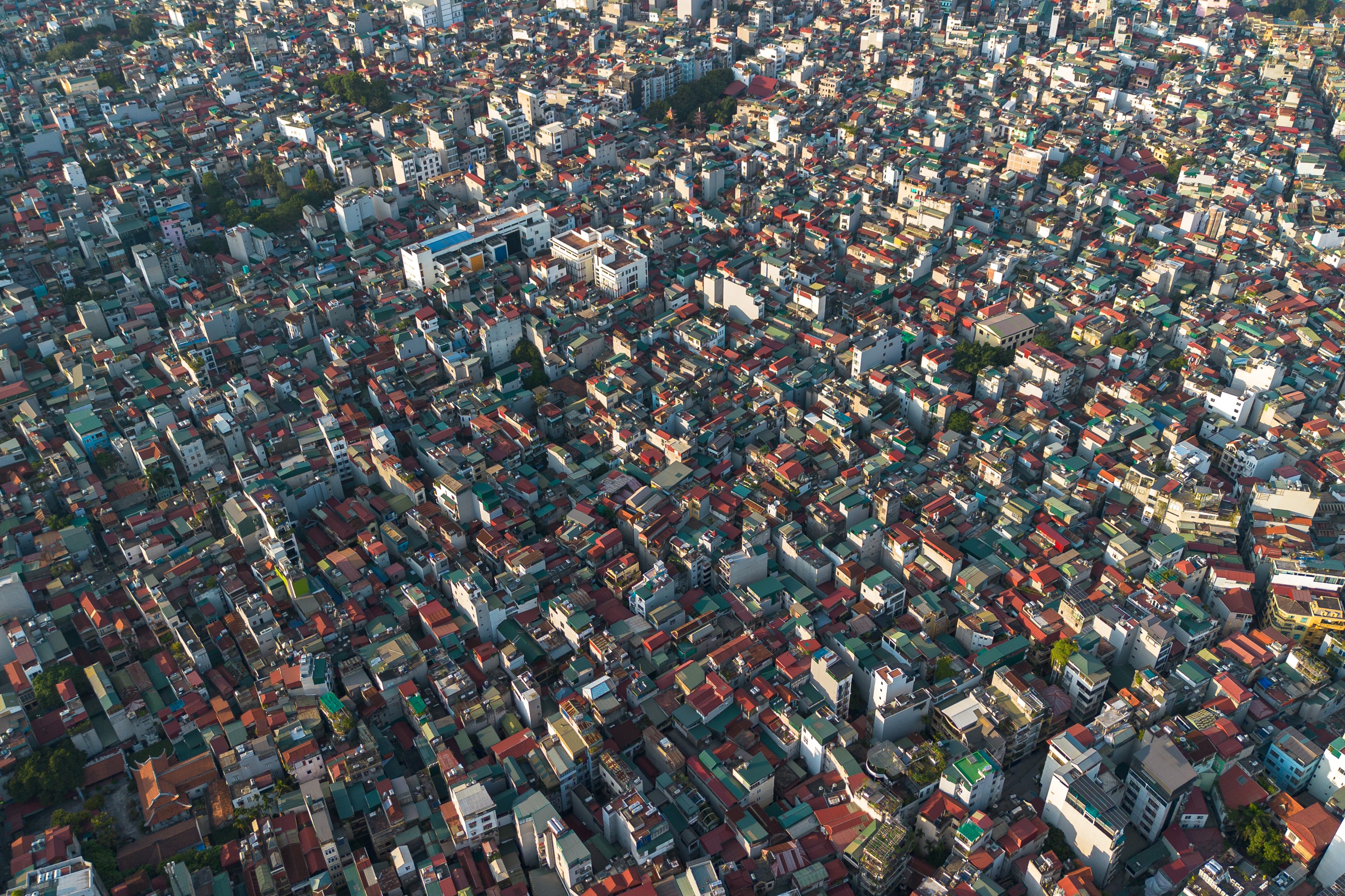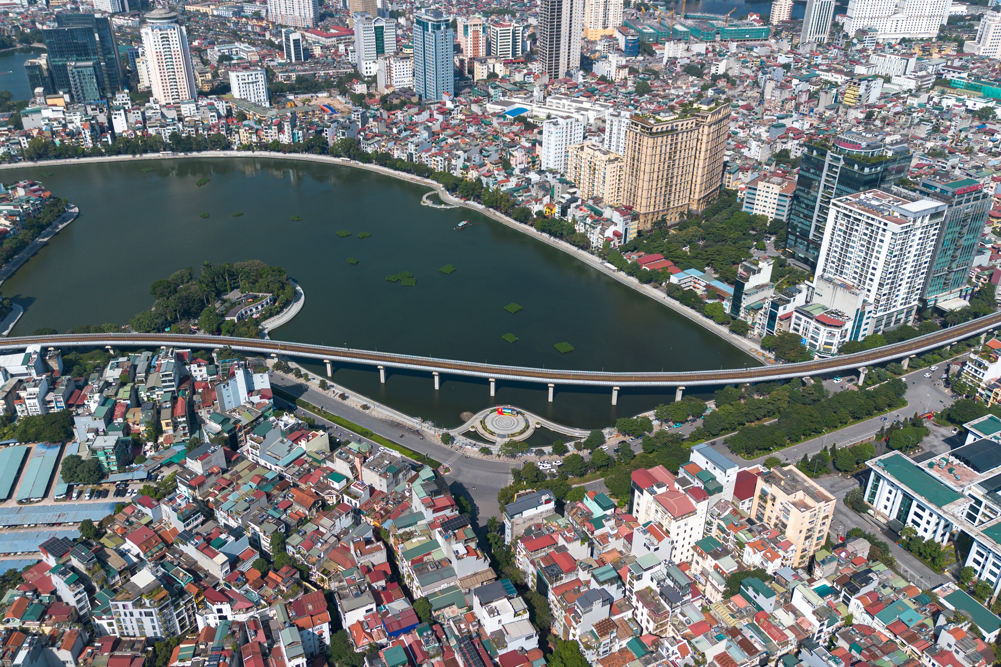 Từ 1/7/2026, Hà Nội sẽ thực hiện vùng phát thải thấp thí điểm tại 9 phường trong Vành đai 1. Tại vùng phát thải thấp, thành phố sẽ cấm xe môtô, xe gắn máy lưu thông theo khung giờ/thời điểm hoặc khu vực. Trong ảnh là góc nhìn từ trên cao phường Hai Bà Trưng, một trong 9 phường sẽ thực hiện vùng phát thải thấp.