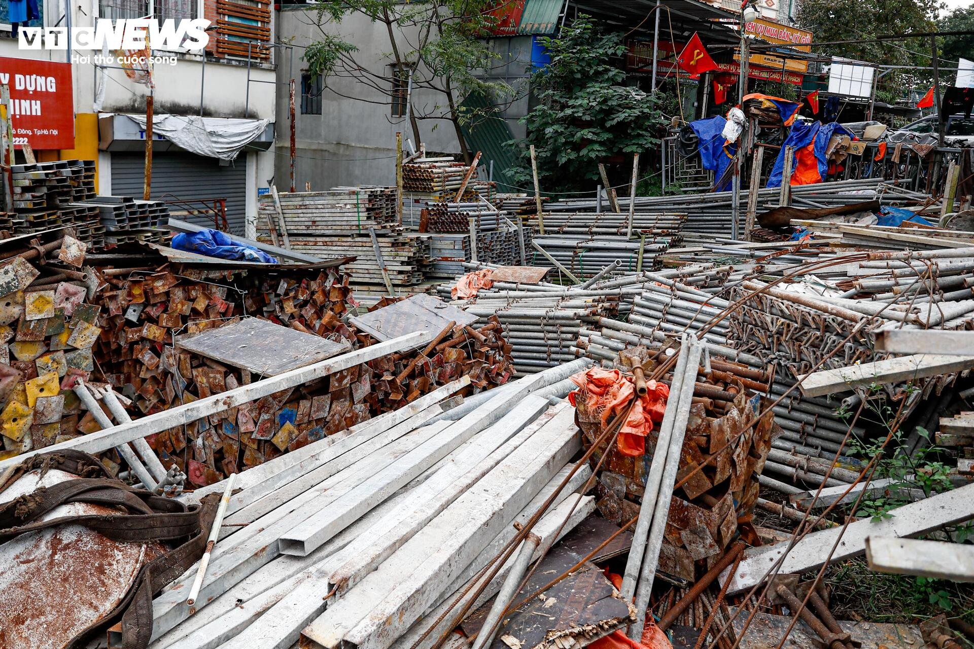 Vật liệu xây dựng từ một cửa hàng được xếp chất đống ngay bên ngoài khu vực chợ.