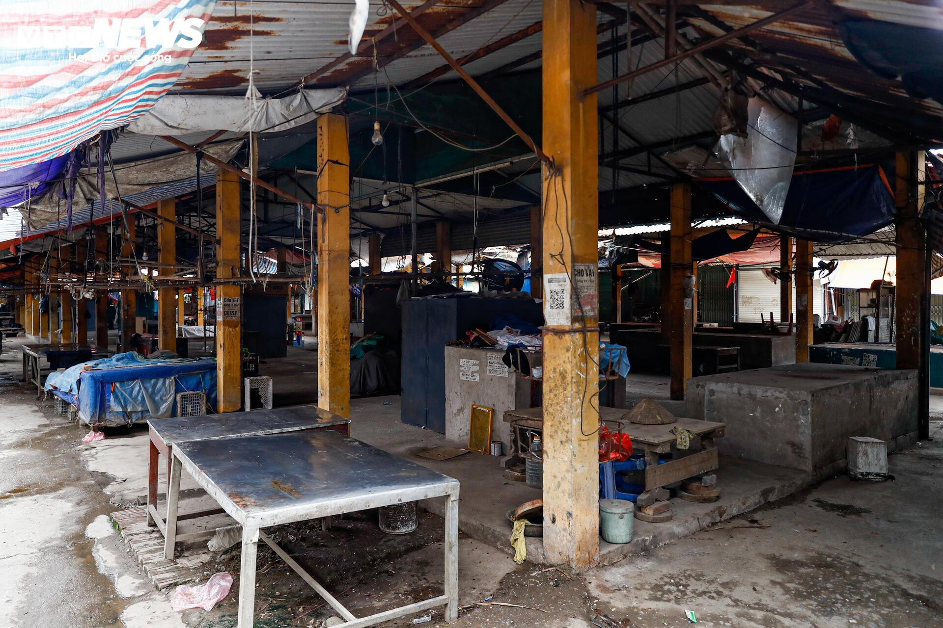 Nhiều mảng tường tại chợ bong tróc, loang lổ và xuống cấp nghiêm trọng theo thời gian.