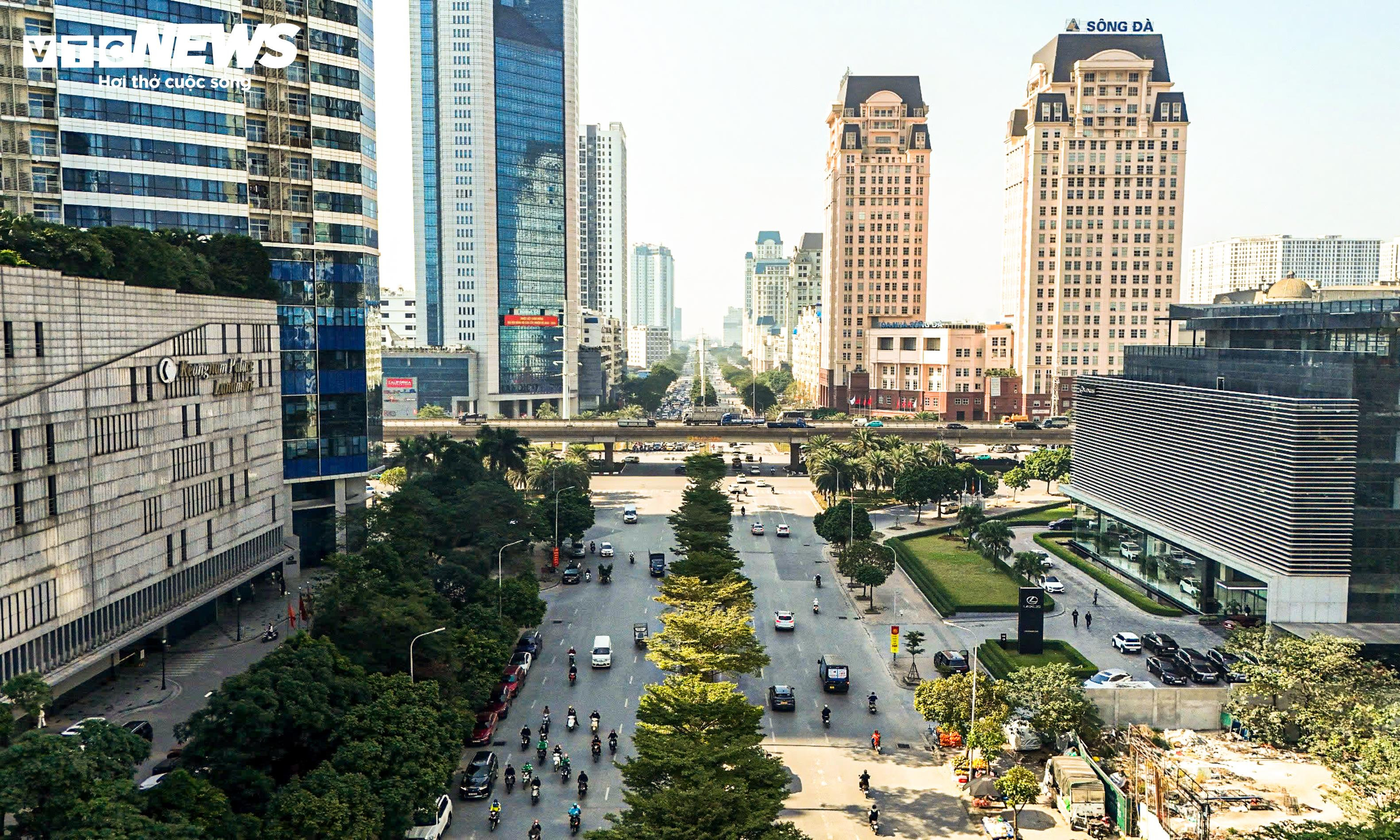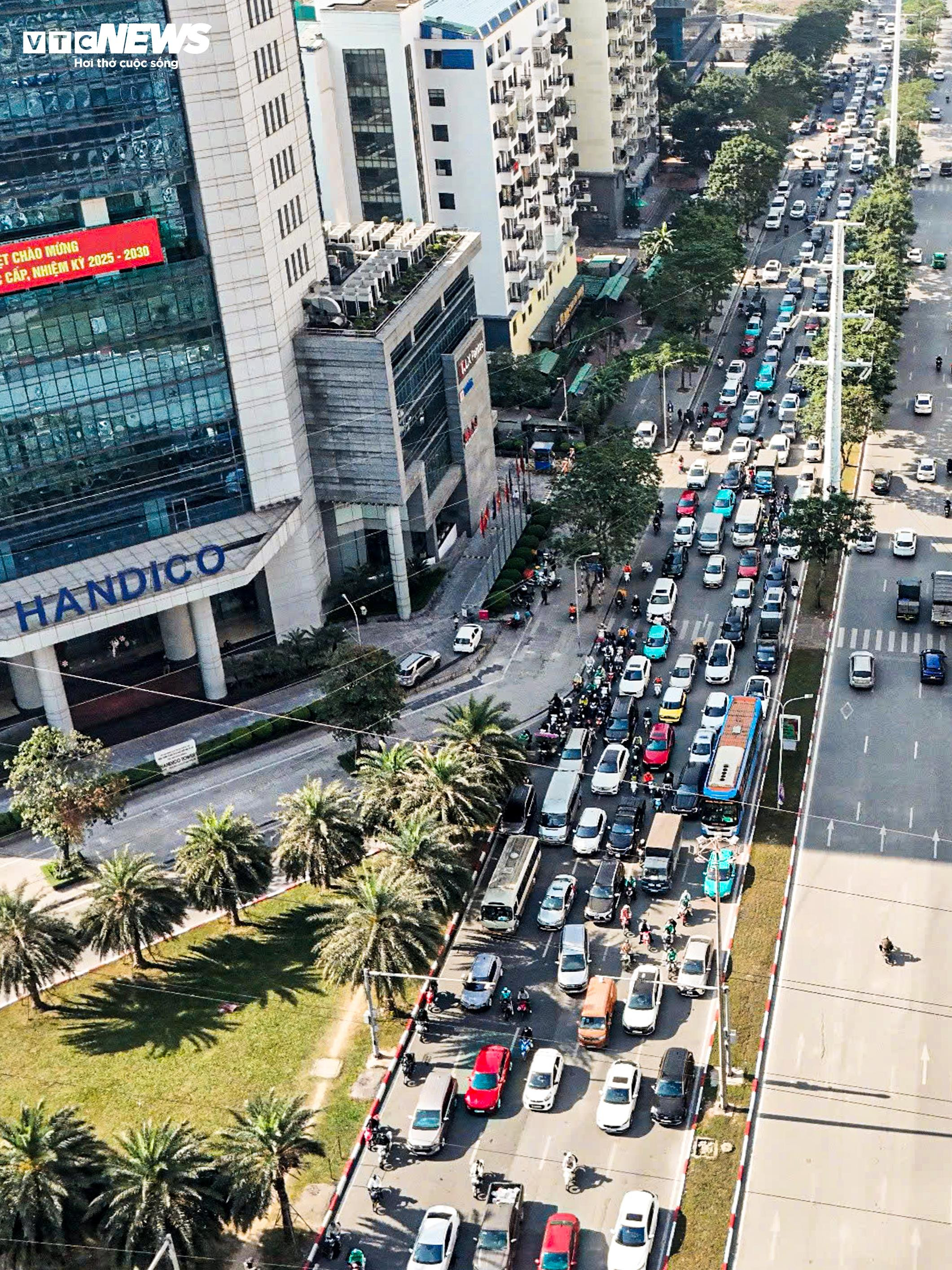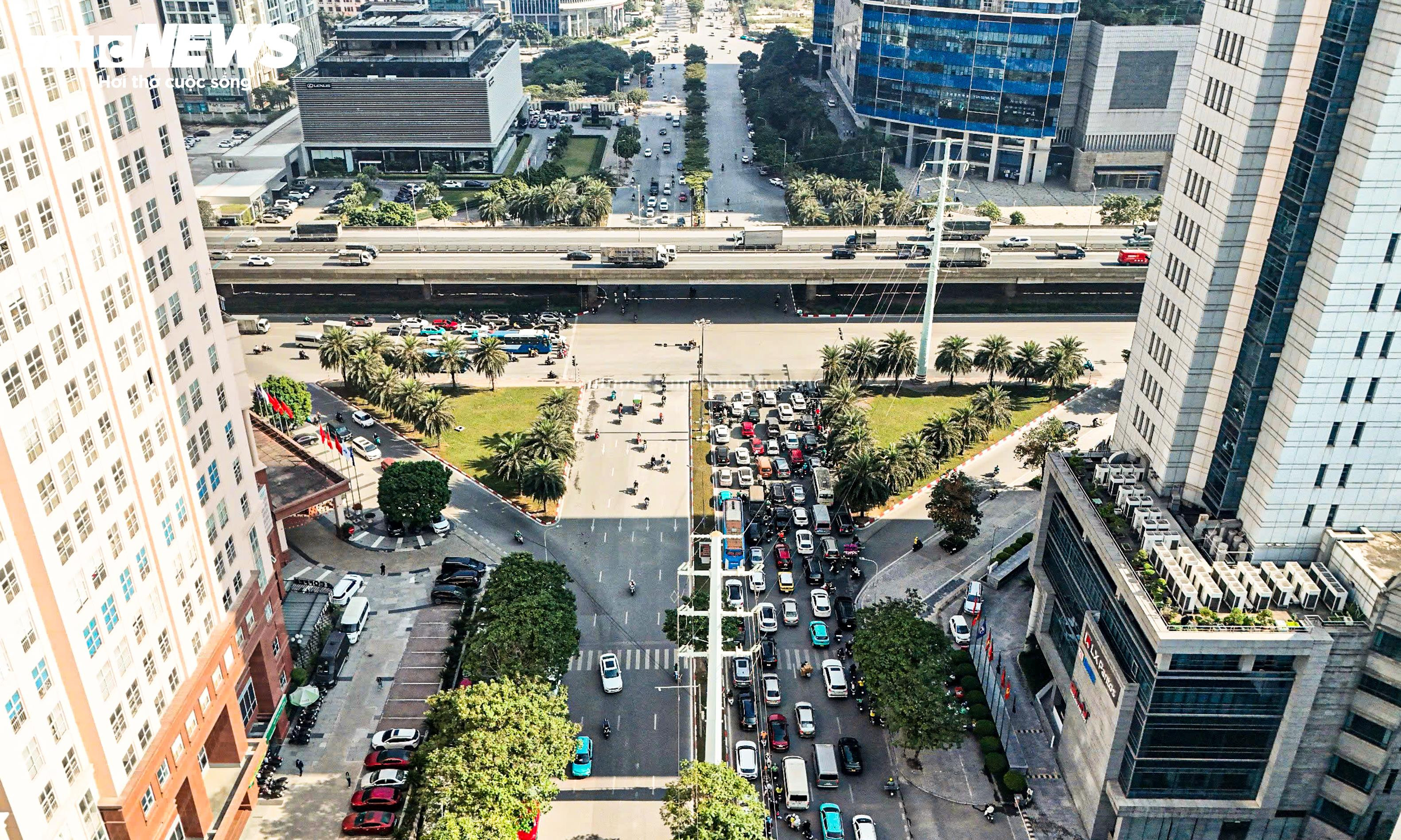Dọc hai tuyến đường Mễ Trì và Dương Đình Nghệ có hàng loạt tòa nhà văn phòng cao tầng, kéo theo mật độ phương tiện tăng mạnh vào đầu giờ làm việc và cuối giờ chiều. Điều này khiến tình trạng đông đúc không chỉ diễn ra trong giờ cao điểm mà còn lan sang các khung giờ khác trong ngày.