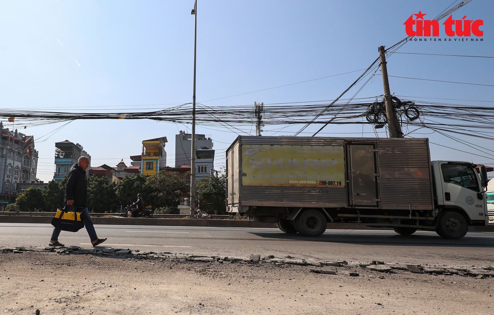 Hệ thống cáp viễn thông và đường điện đang chờ được hạ ngầm.