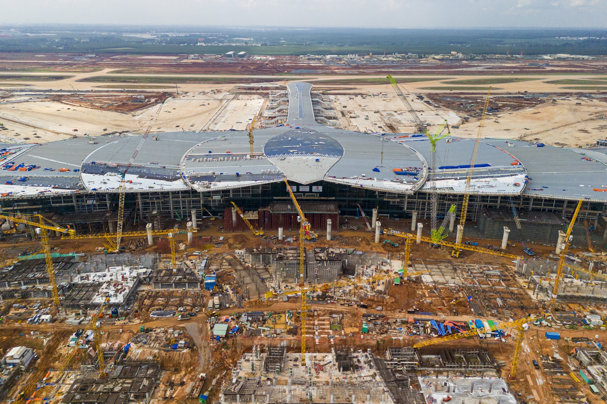 Công trình nhà ga hành khách đang được bố trí 4.700 nhân sự và hơn 1.000 máy móc thiết bị để thi công.