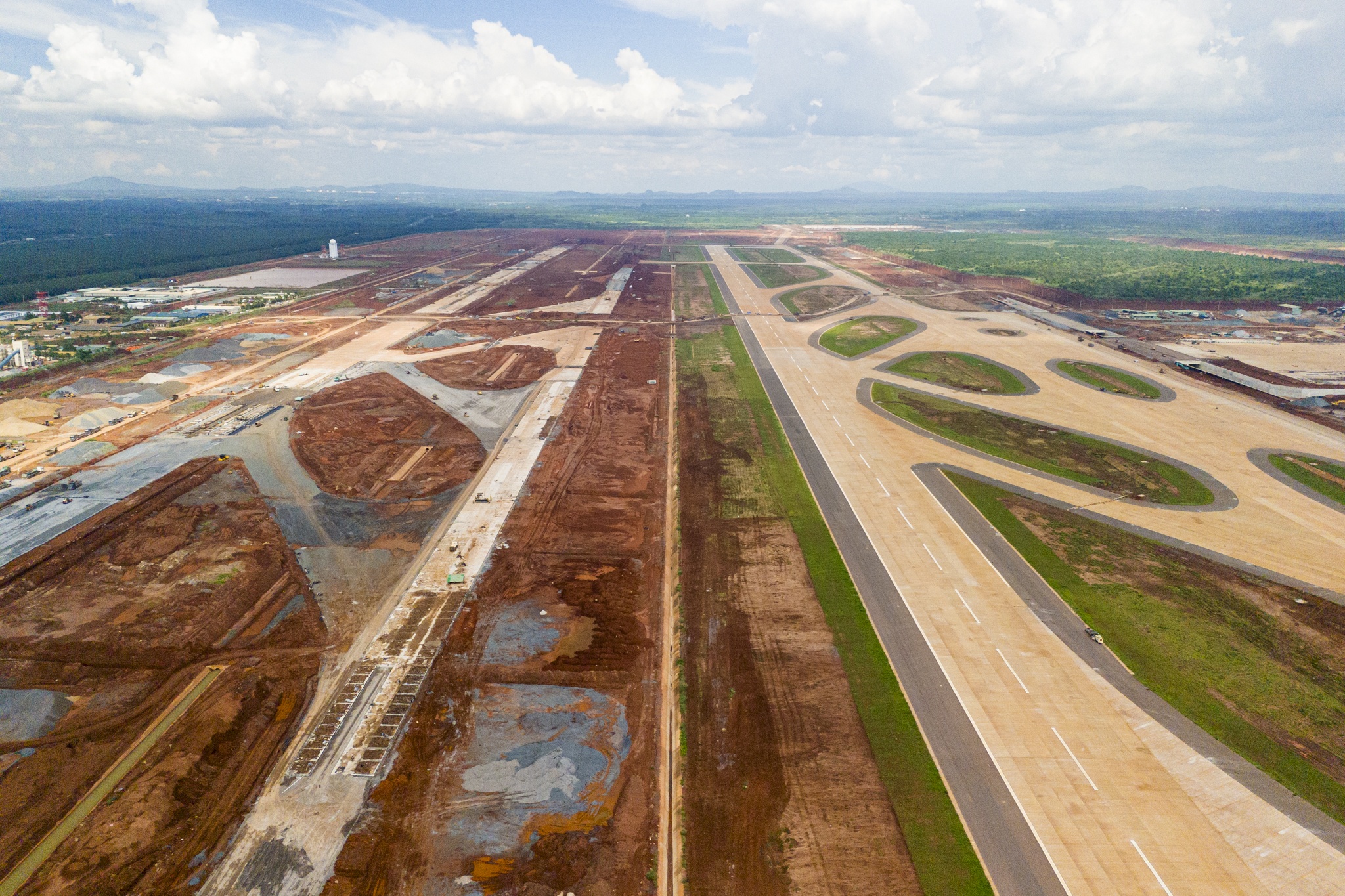Cạnh đó đường băng số 2 (bên trái) cũng đã lộ rõ hình dáng chỉ sau nửa năm khởi công. Trong chuyến kiểm tra thực dịa vào ngày 2/11, Bộ trưởng Bộ Xây dựng Trần Hồng Minh cũng đã chỉ đạo hoàn thành toàn bộ đường băng số 2, bãi đỗ tàu bay và các hạng mục phụ trợ để đảm bảo kết nối liên hoàn giữa hai đường băng