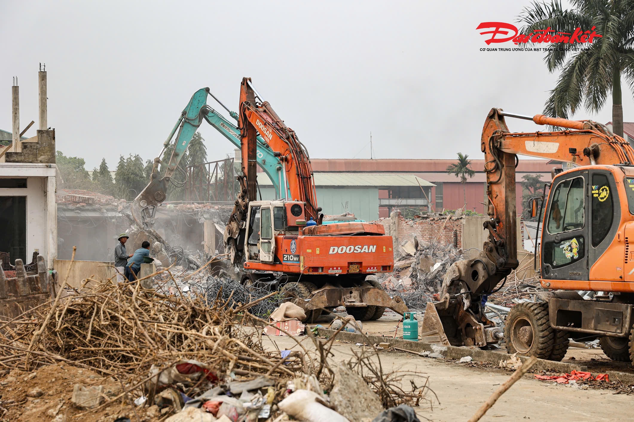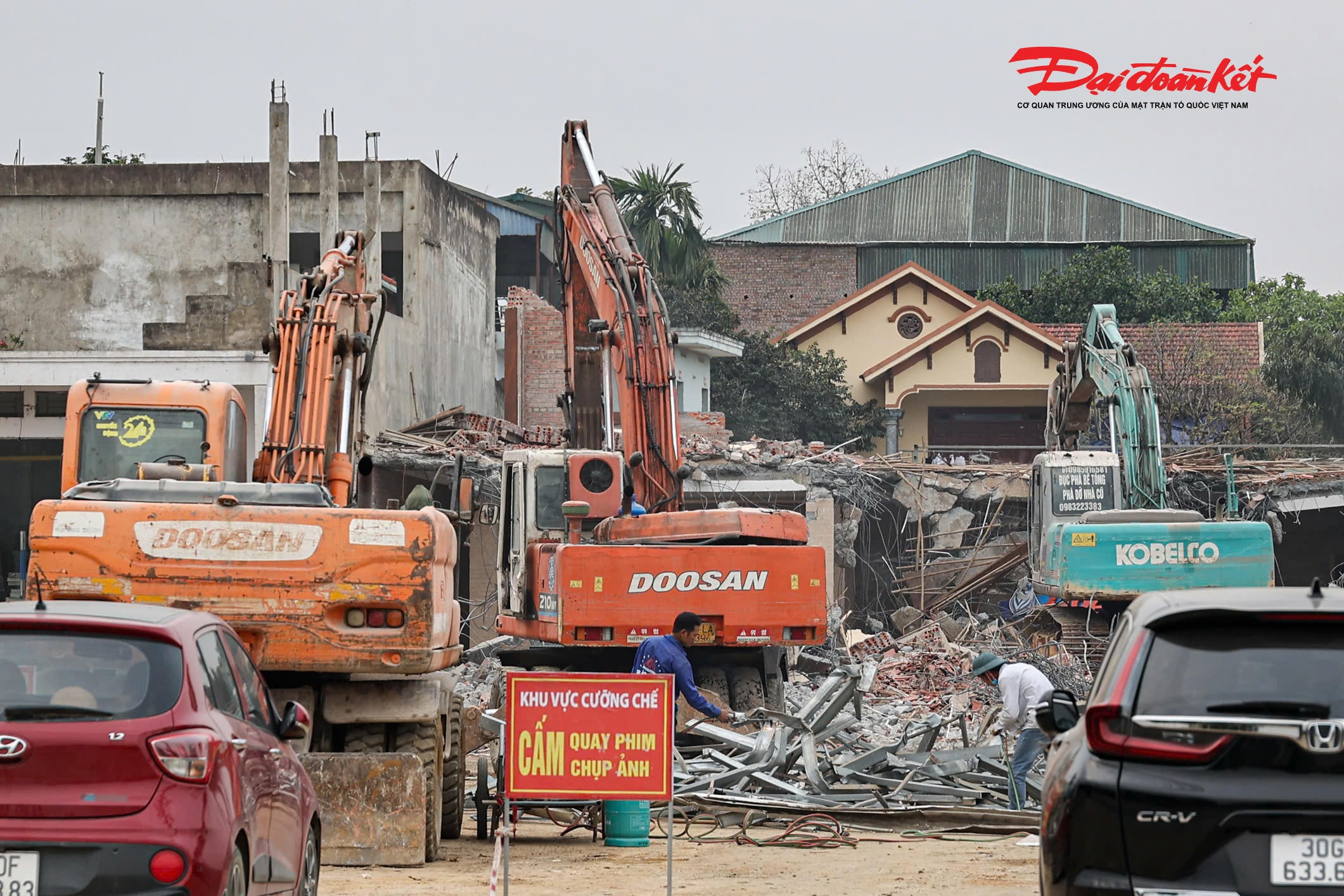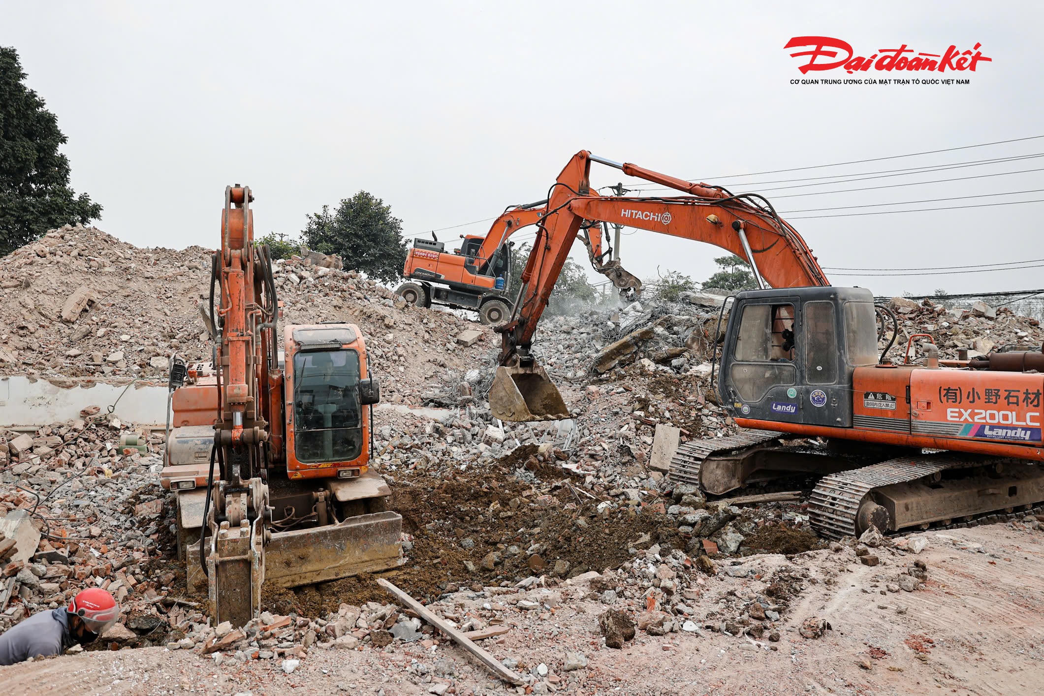 Máy móc cùng lực lượng công nhân đang được huy động, khẩn trương triển khai công tác phá dỡ, phấn đấu sớm hoàn tất việc bàn giao mặt bằng, đáp ứng tiến độ thi công dự án.