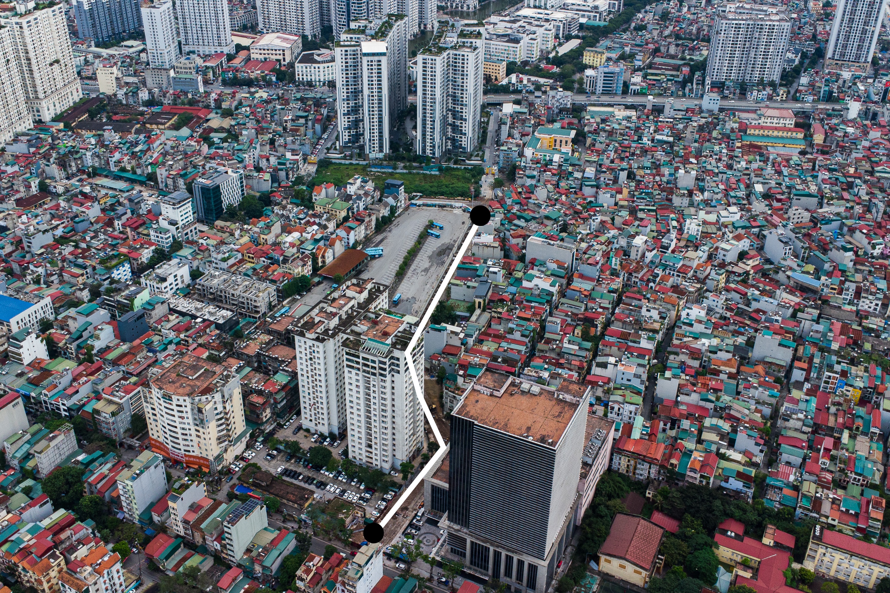 Điểm cuối của dự án tại tại ngõ 559 Kim Ngưu, tiếp giáp với khu vực chung cư Imperia Sky Garden và dẫn ra phố Minh Khai.