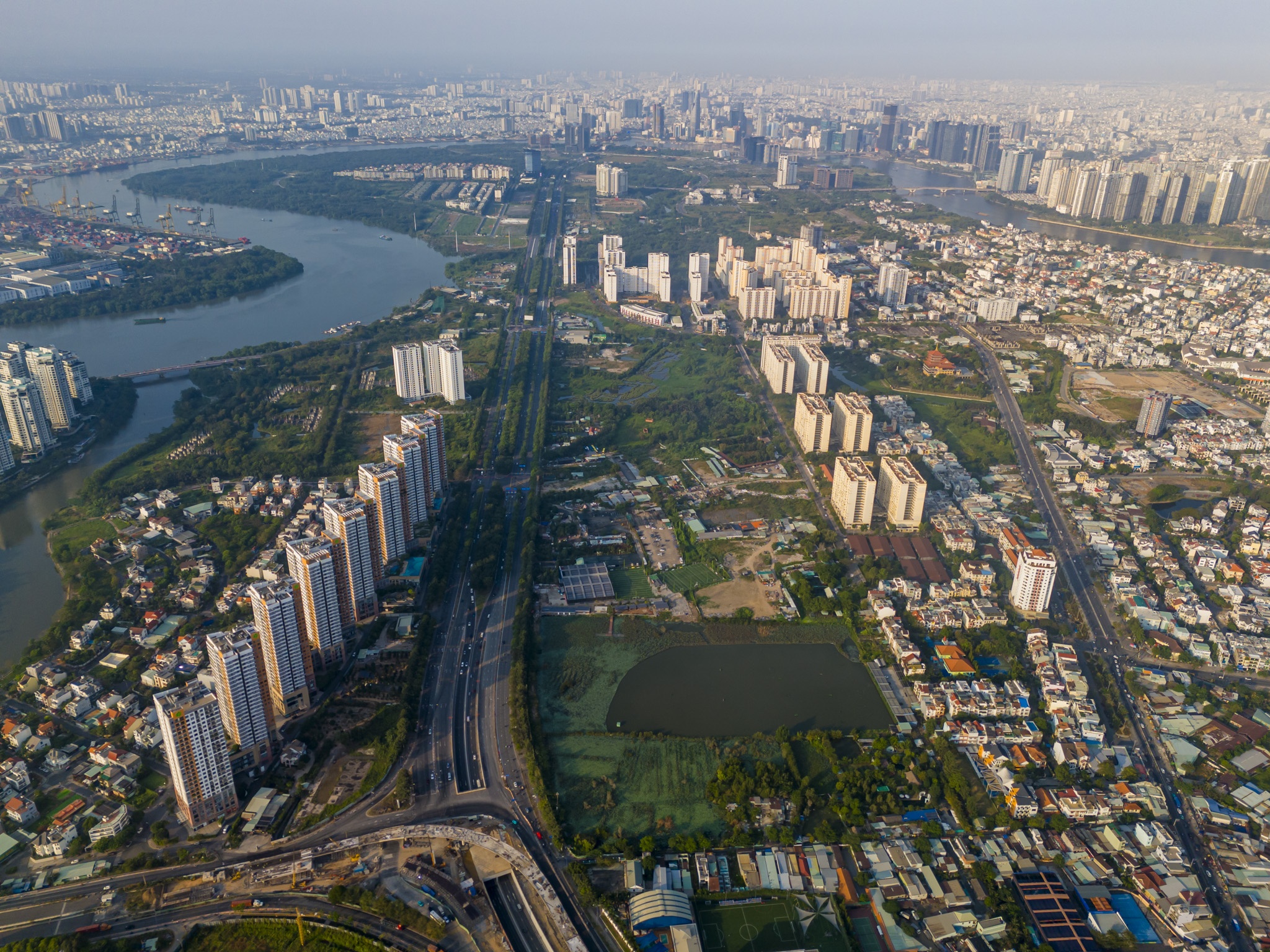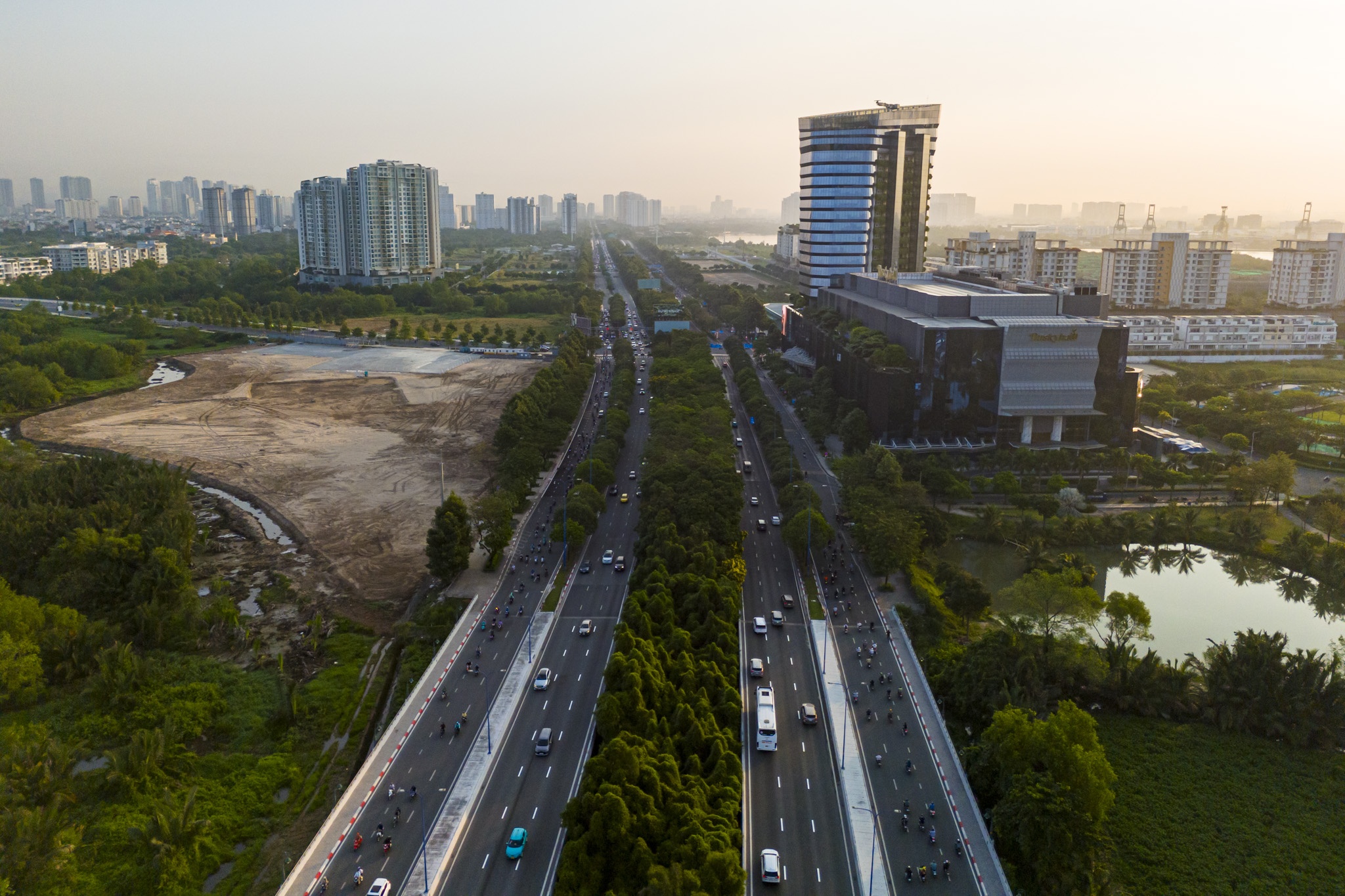 Tại khu vực giao giữa đường Nguyễn Cơ Thạch và đại lộ Mai Chí Thọ (bên trái) sẽ xây dựng ga ngầm Cung Thiếu Nhi của tuyến metro số 2A (Bến Thành - Thủ Thiêm).