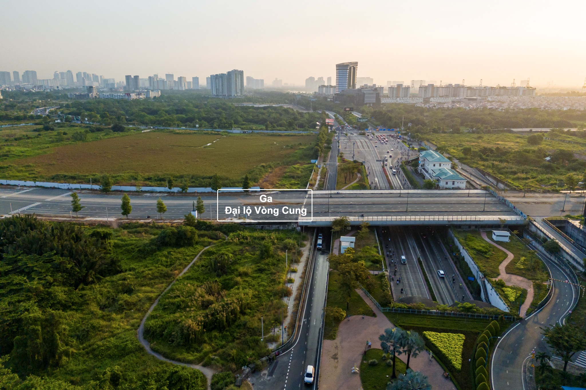 Sau đó tuyến metro số 2A sẽ băng ngang qua sông Sài Gòn tiến đến ga Đại lộ Vòng Cung được đặt trên trục giao thông chính của Khu đô thị mới Thủ Thiêm, nơi định hình không gian kiến trúc hiện đại với mật độ xây dựng thấp và nhiều mảng xanh.