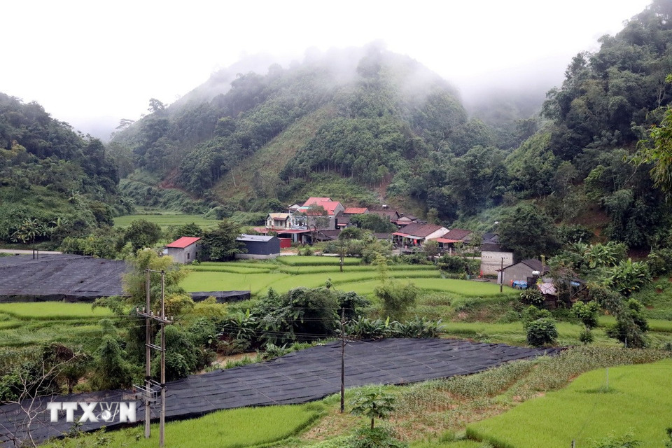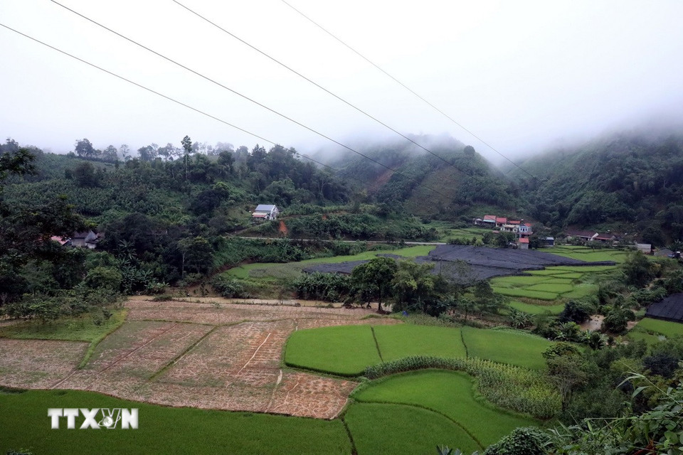 Khu vực hạ du đập thủy điện Bắc Khê 1, xã Tân Tiến, tỉnh Lạng Sơn, vẫn bình thường, nhà dân, hoa màu không bị ngập. (Ảnh: Văn Đạt/TTXVN)