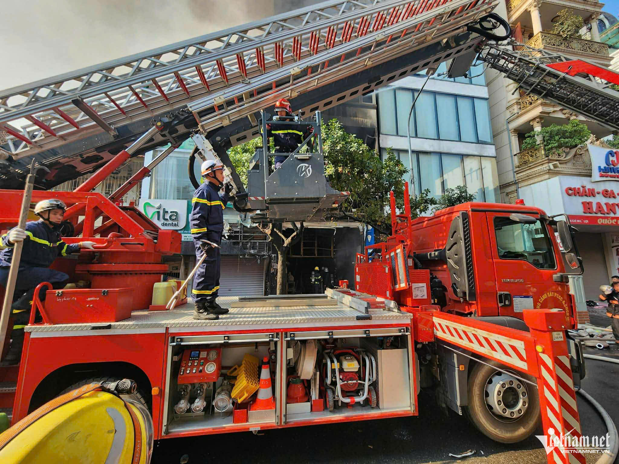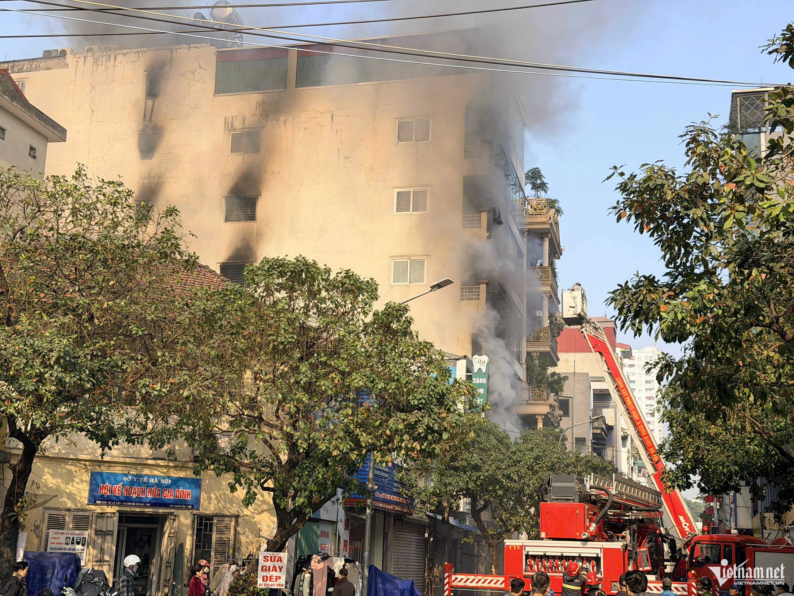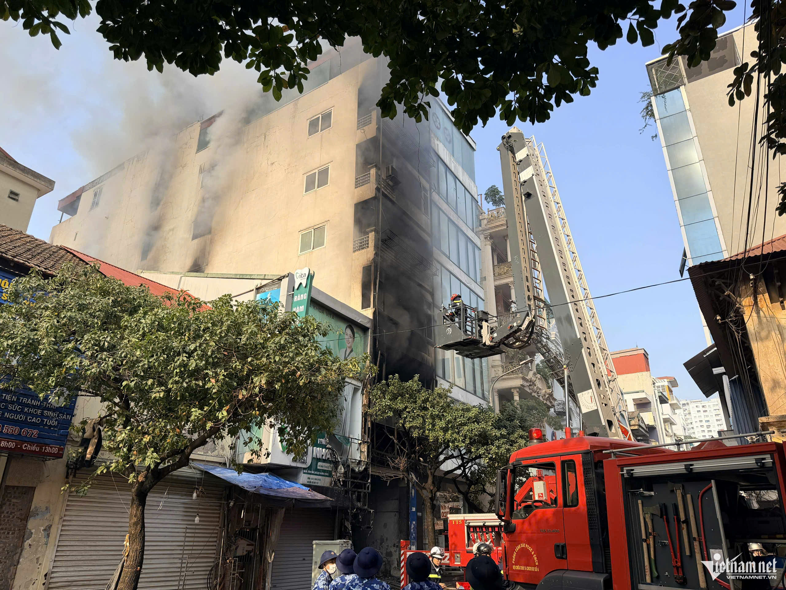 Trung tâm Thông tin chỉ huy Công an TP Hà Nội đã khẩn trương điều động Đội Chữa cháy và Cứu nạn, cứu hộ khu vực số 4, đồng thời huy động lực lượng chi viện từ các đội chữa cháy và cứu nạn, cứu hộ khu vực khác cùng xe chữa cháy và xe thang đến hiện trường.