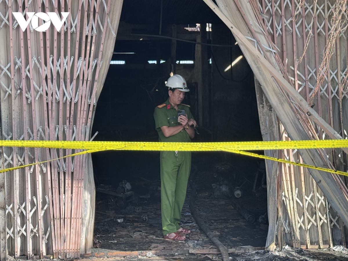Lực lượng chức năng đang thu thập mẫu vật, điều tra làm rõ nguyên nhân vụ cháy.
