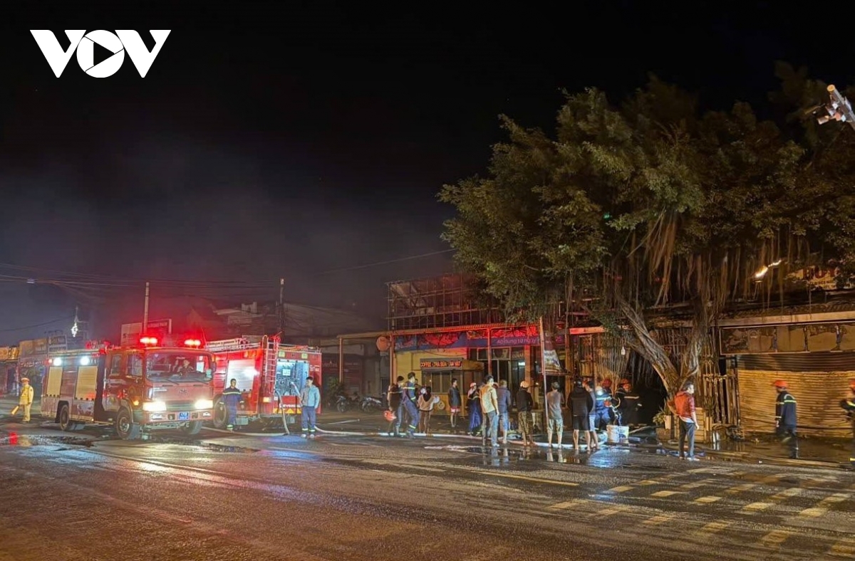 Vụ cháy xảy ra lúc 2 giờ 45 phút rạng sáng 27/12, tại cửa hàng kinh doanh thiết bị điện, nước trên mặt tiền Quốc lộ 14.