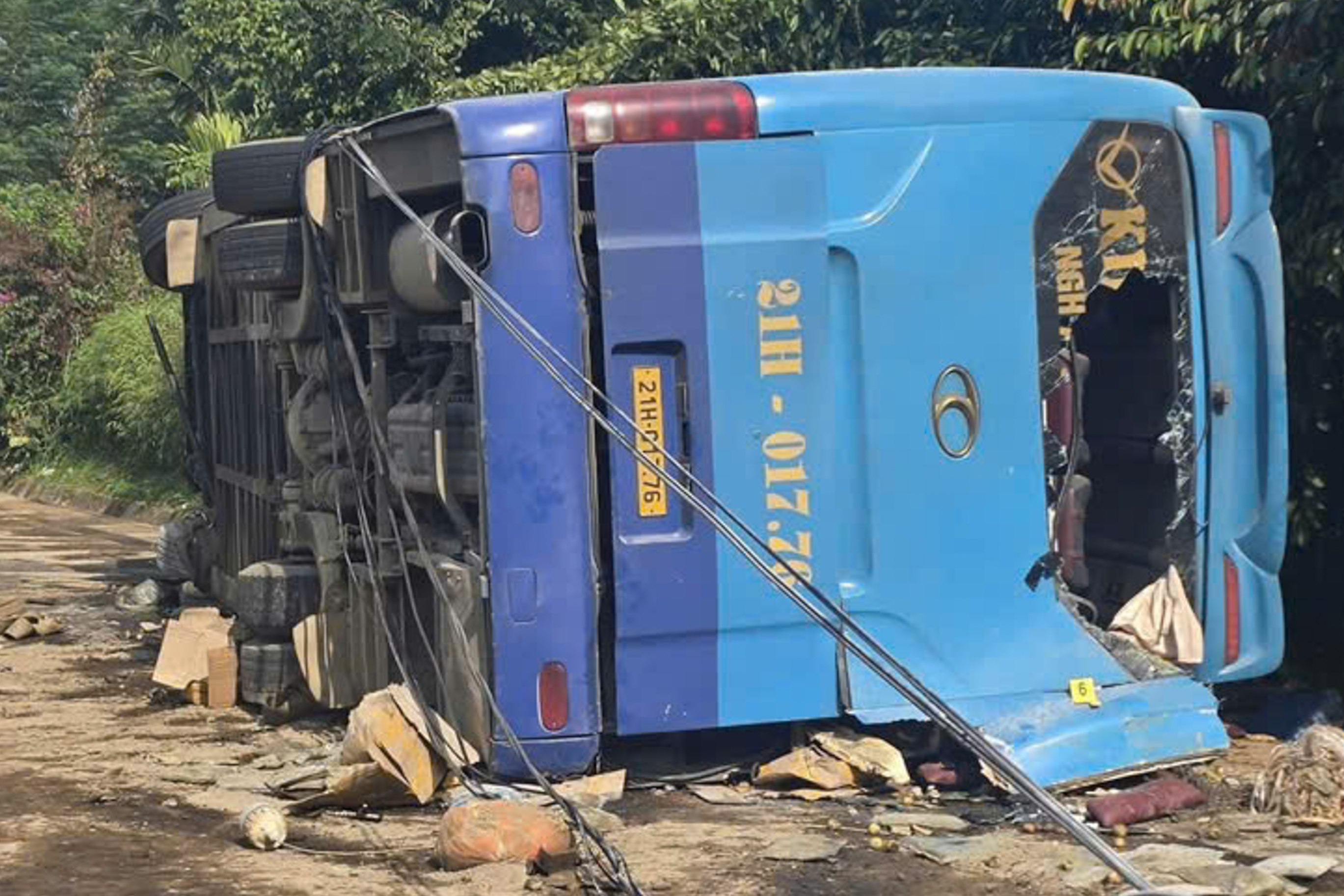 Thời điểm trên, xe khách giường nằm mang biển kiểm soát 21H-017.76 chở hơn 20 hành khách đang chạy theo hướng Việt Cường – Minh Phú thì bất ngờ lao thẳng vào taluy dương bên đường.