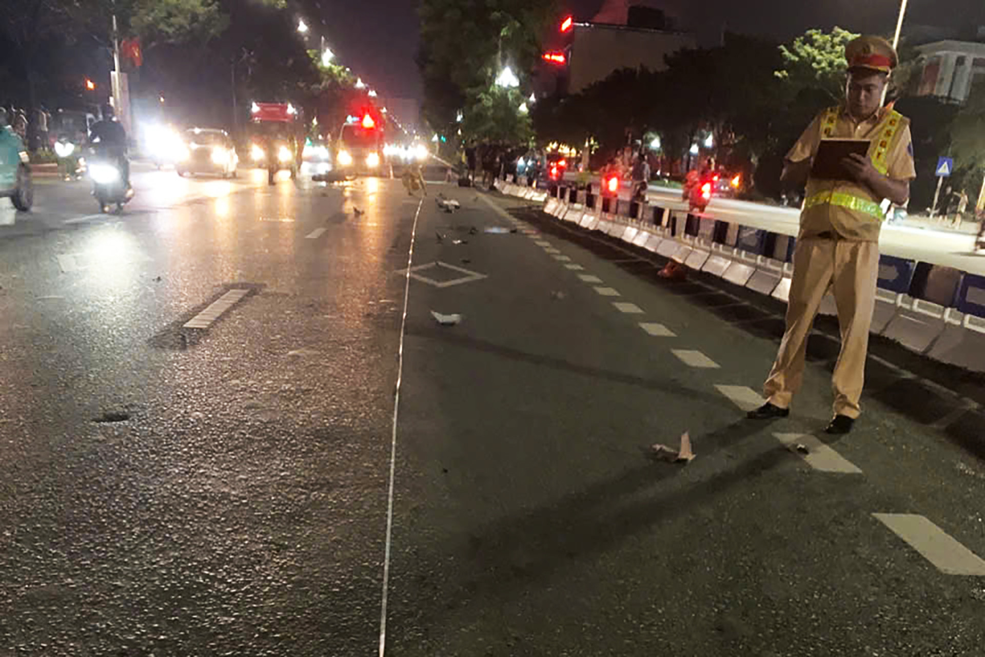 Theo đó, khoảng 21h20 ngày 15/10, Đội CSGT đường bộ số 6 (Phòng CSGT Công an Hà Nội) nhận được tin báo về vụ tai nạn giữa 2 xe máy trên đường Phan Tây Nhạc (phường Xuân Phương, Hà Nội).