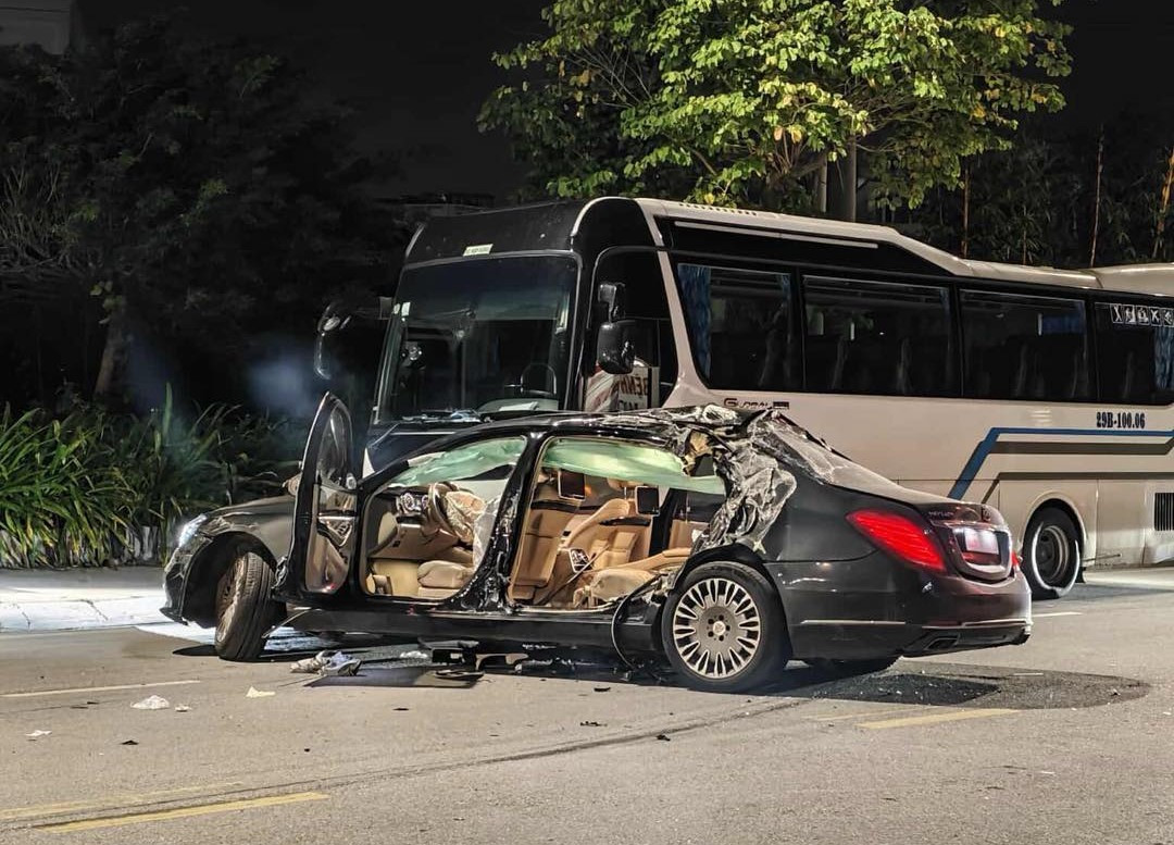 Camera an ninh của người dân ghi lại cho thấy sau cú va chạm mạnh, xe khách rung lắc dữ dội, còn chiếc Maybach xoay nhiều vòng rồi văng ra xa vài mét. Phần đầu và thân xe Maybach biến dạng nặng, cửa sau bên trái bung bật, xe khách cũng hư hỏng nghiêm trọng ở phần đầu.