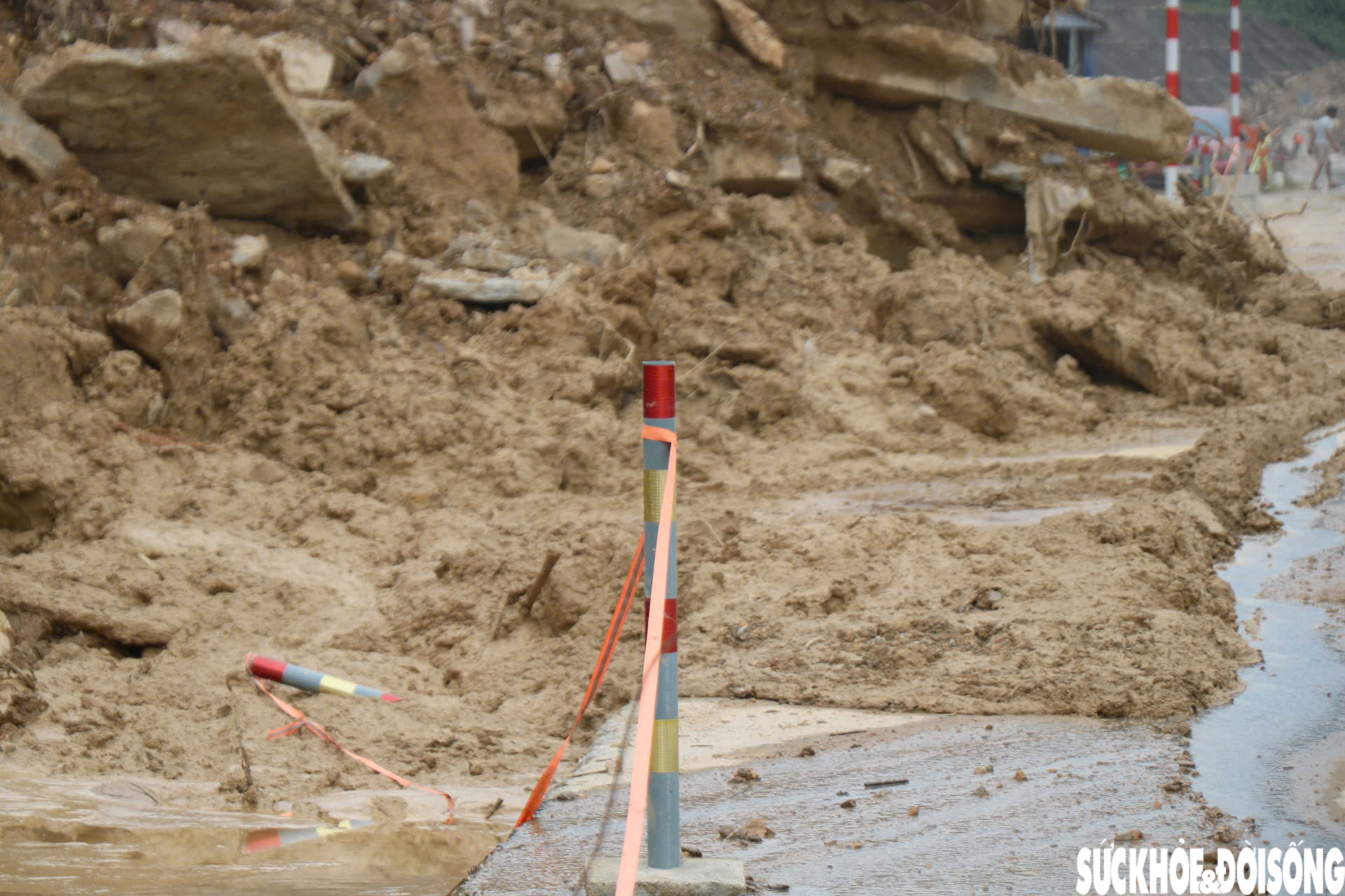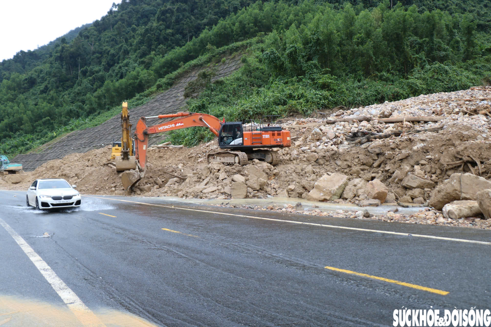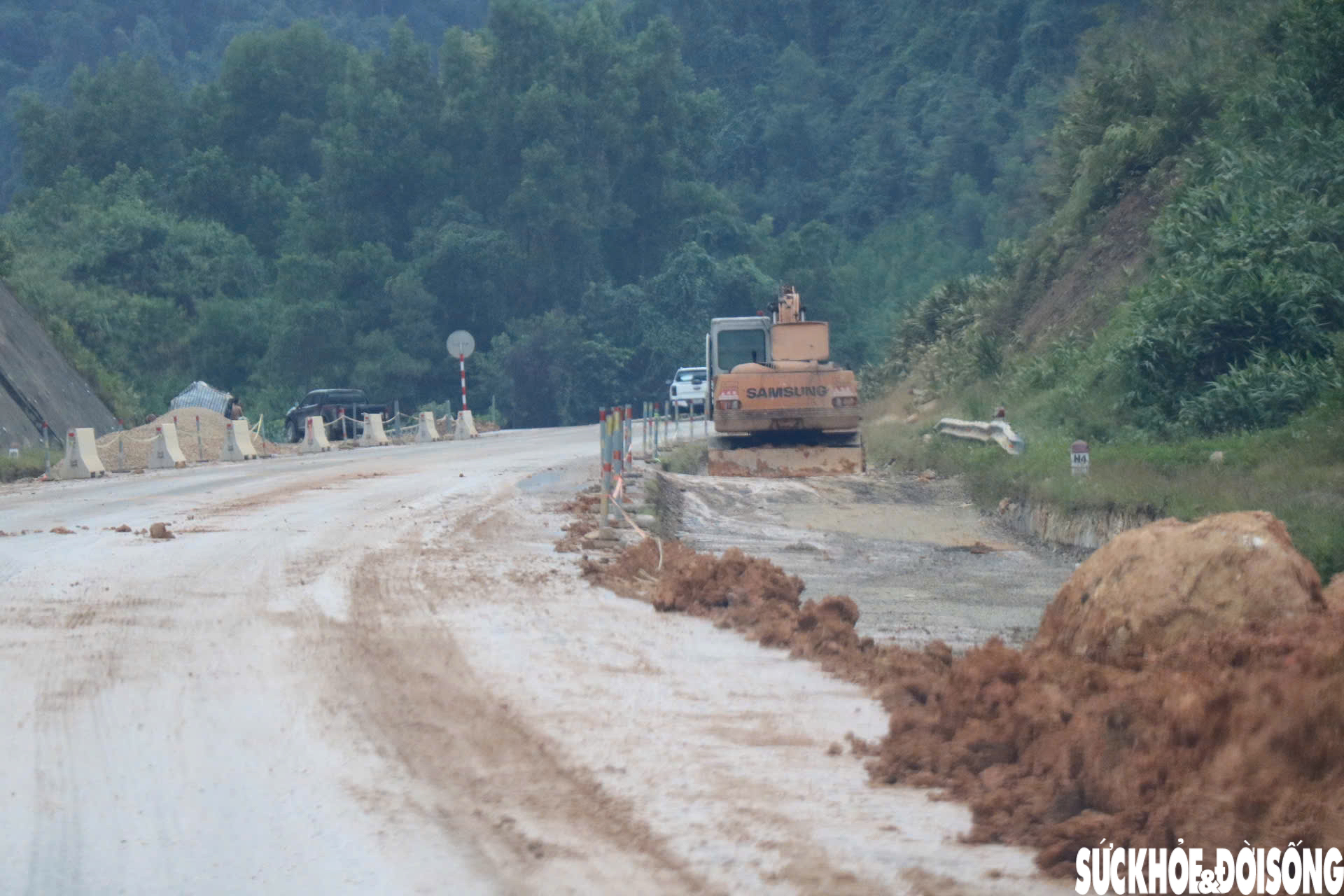 Ghi nhận trong ngày 10/11, các phương tiện cơ giới vẫn đang khẩn trương thu dọn đất đá, tuy nhiên khối lượng sạt trượt từ vách núi xuống rất lớn khiến công tác khắc phục gặp nhiều khó khăn.