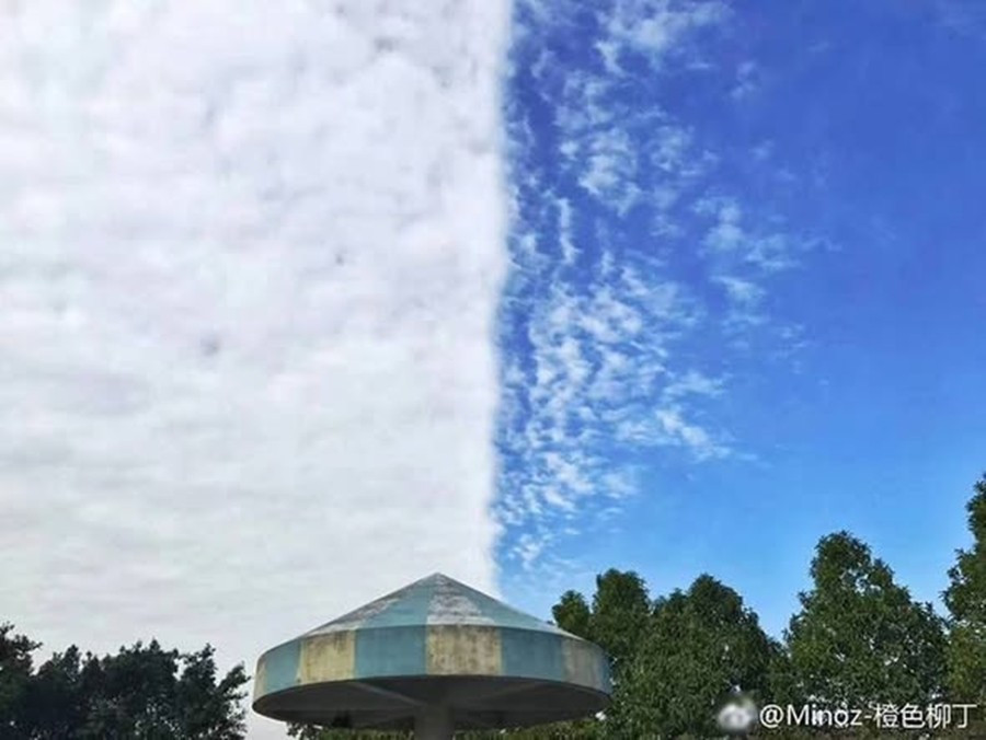 Bầu trời gần như chia đôi từng được chụp ở Quảng Đông (Trung Quốc). Ảnh: CGTN.