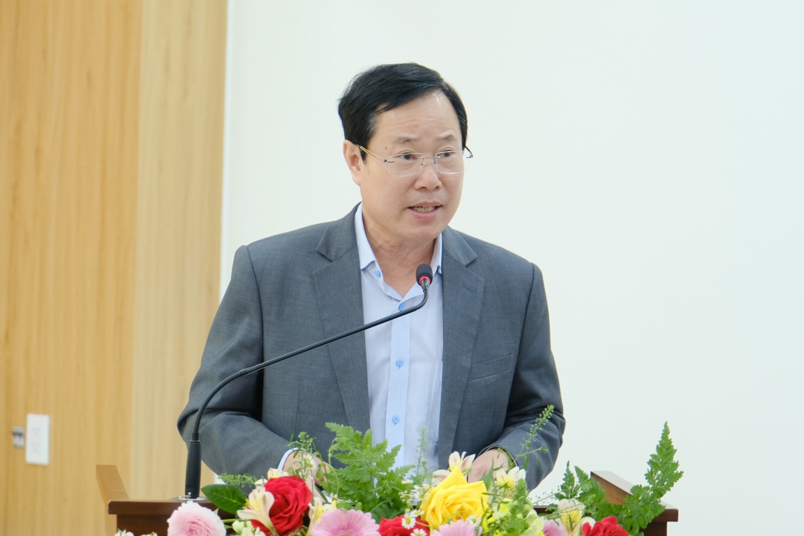 Đồng chí Phạm Triều, Phó Chủ tịch Thường trực Ủy ban MTTQ Việt Nam tỉnh báo cáo tình hình, kết quả tổ chức lấy ý kiến nhận xét và sự tín nhiệm của cử tri nơi cư trú đối với những người được giới thiệu ứng cử đại biểu HĐND tỉnh nhiệm kỳ 2026 - 2031