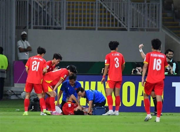 Chấn thương của Hiểu Minh ngay ở hiệp 1 khiến cho U23 Việt Nam gặp nhiều khó khăn.
