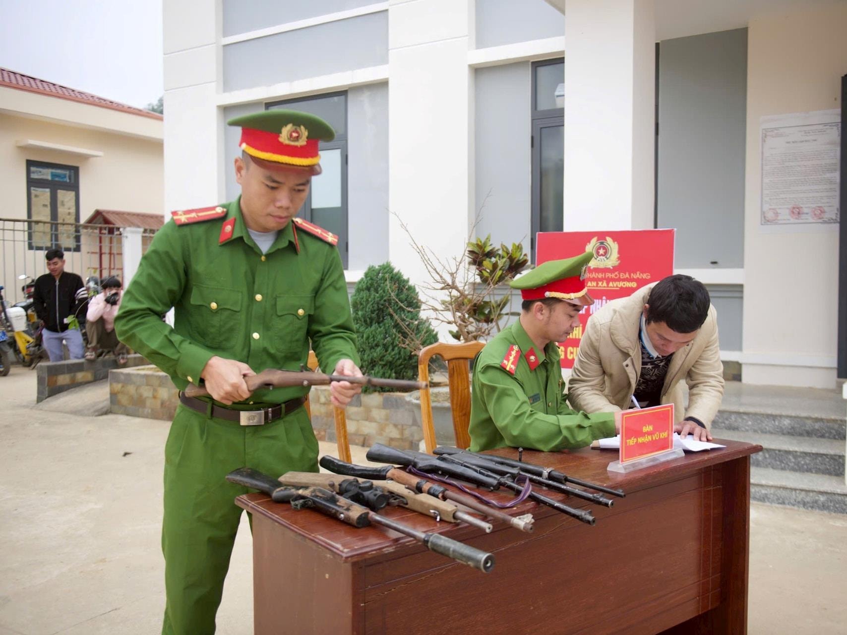 Sau khi nghe lực lượng công an tuyên truyền, gia đình anh Blinh Mơi và người dân trên địa bàn (Xã A Vương, TP Đà Nẵng) đã đến công an xã giao nộp vũ khí.