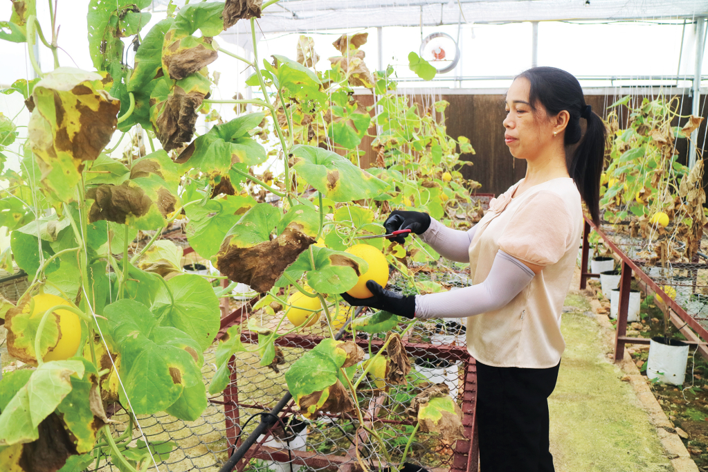 Với diện tích nhà màng trồng dưa lưới rộng 1.000m2, hiện Trung tâm trồng thử nghiệm trên 1.000 cây dưa Kim Hồng Ngọc. Nguồn nước, phân bón được chuyển qua hệ thống tưới nhỏ giọt không những giúp tiết kiệm nước, phân mà còn giúp dưa hấp thụ chất dinh dưỡng tốt hơn, đáp ứng từng giai đoạn sinh trưởng của cây. Khi dưa ra hoa, tiến hành thụ phấn để cho dưa kết trái (mỗi cây chỉ giữ lại một quả). Thường xuyên giám sát nhiệt độ, độ ẩm, điều chỉnh cường độ ánh sáng, cắt tỉa lá, nhánh, tạo sự thông thoáng cho vườn, giúp cây hạn chế sâu bệnh, phát triển và đảm bảo năng suất, chất lượng sản phẩm ổn định.