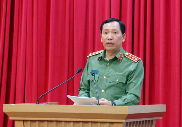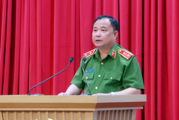 Trung tướng Trần Văn Thiện, Cục trưởng Cục Cảnh sát Quản lý tạm giữ, tạm giam và thi hành án hình sự tại cộng đồng điều hành tham luận.