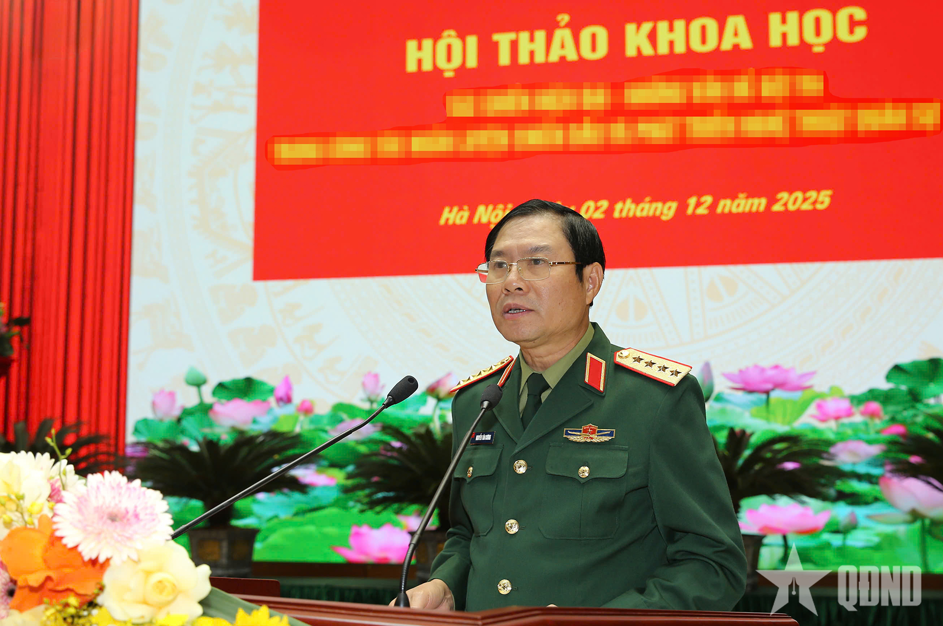 Đại tướng Nguyễn Tân Cương phát biểu tại hội thảo.
