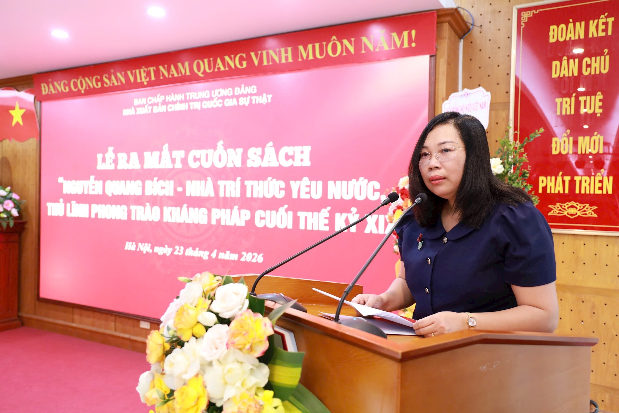 Phát biểu tại buổi lễ, Phó Giám đốc – Phó Tổng Biên tập Nhà Xuất bản Chính trị quốc gia Sự thật Phạm Thị Thinh nhấn mạnh, cuốn sách “Nguyễn Quang Bích - Nhà trí thức yêu nước, thủ lĩnh phong trào kháng Pháp cuối thế kỷ XIX” góp phần làm phong phú thêm nhận thức của bạn đọc về một giai đoạn lịch sử quan trọng của đất nước, đồng thời khẳng định rõ nét hơn những công lao, đóng góp của Nguyễn Quang Bích trong dòng chảy lịch sử của dân tộc, bồi đắp nền tảng tinh thần, nuôi dưỡng lòng yêu nước và ý thức trách nhiệm đối với thế hệ hôm nay và mai sau.