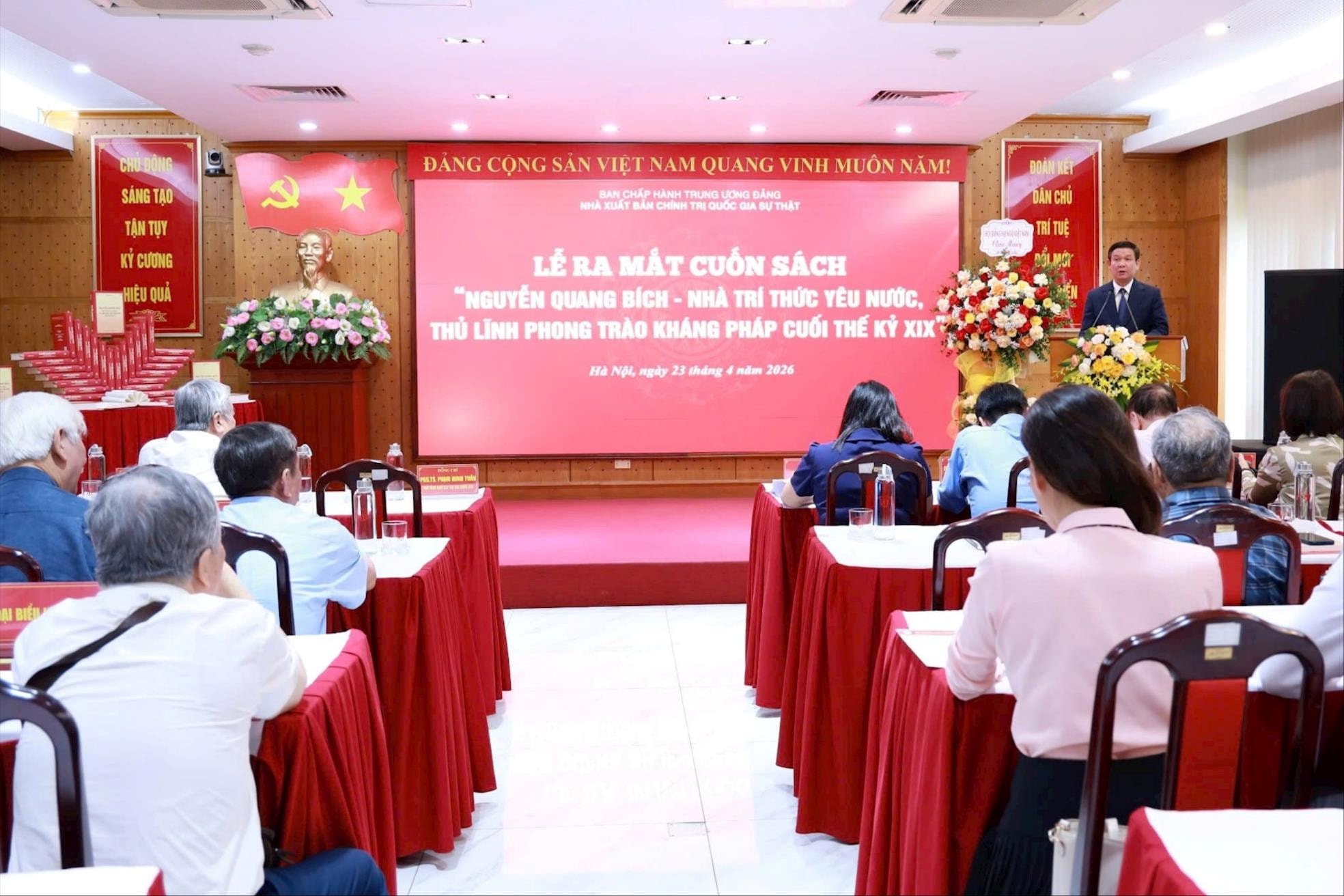 Ngày 23-4, tại Hà Nội, Nhà Xuất bản Chính trị quốc gia Sự thật tổ chức ra mắt cuốn sách “Nguyễn Quang Bích - Nhà trí thức yêu nước, thủ lĩnh phong trào kháng Pháp cuối thế kỷ XIX”.