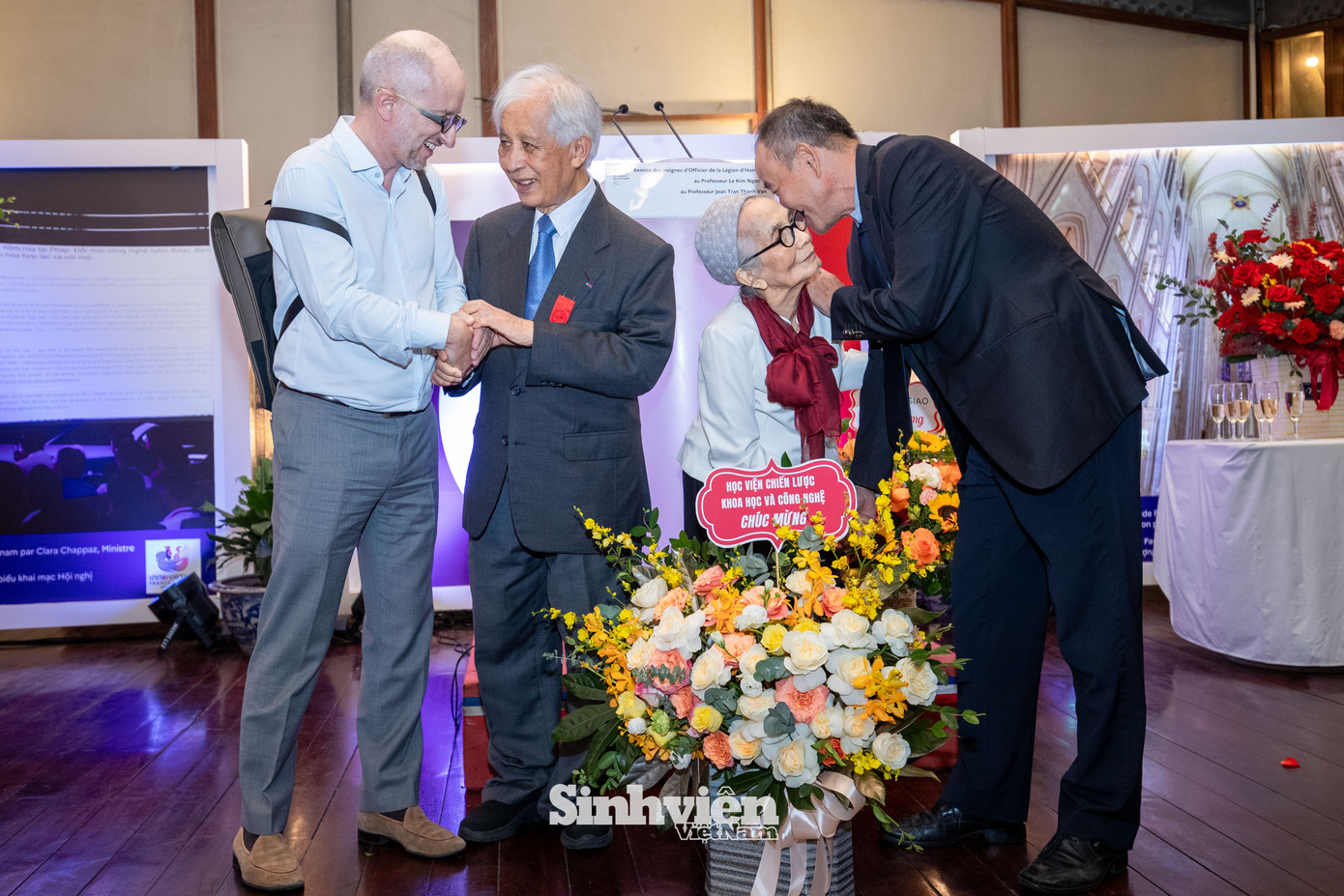 Cuộc gặp gỡ ấm áp của giáo sư Jean-Marc Lavest và vợ chồng giáo sư Trần Thanh Vân tại lễ trao Huân chương Bắc đẩu Bội tinh.