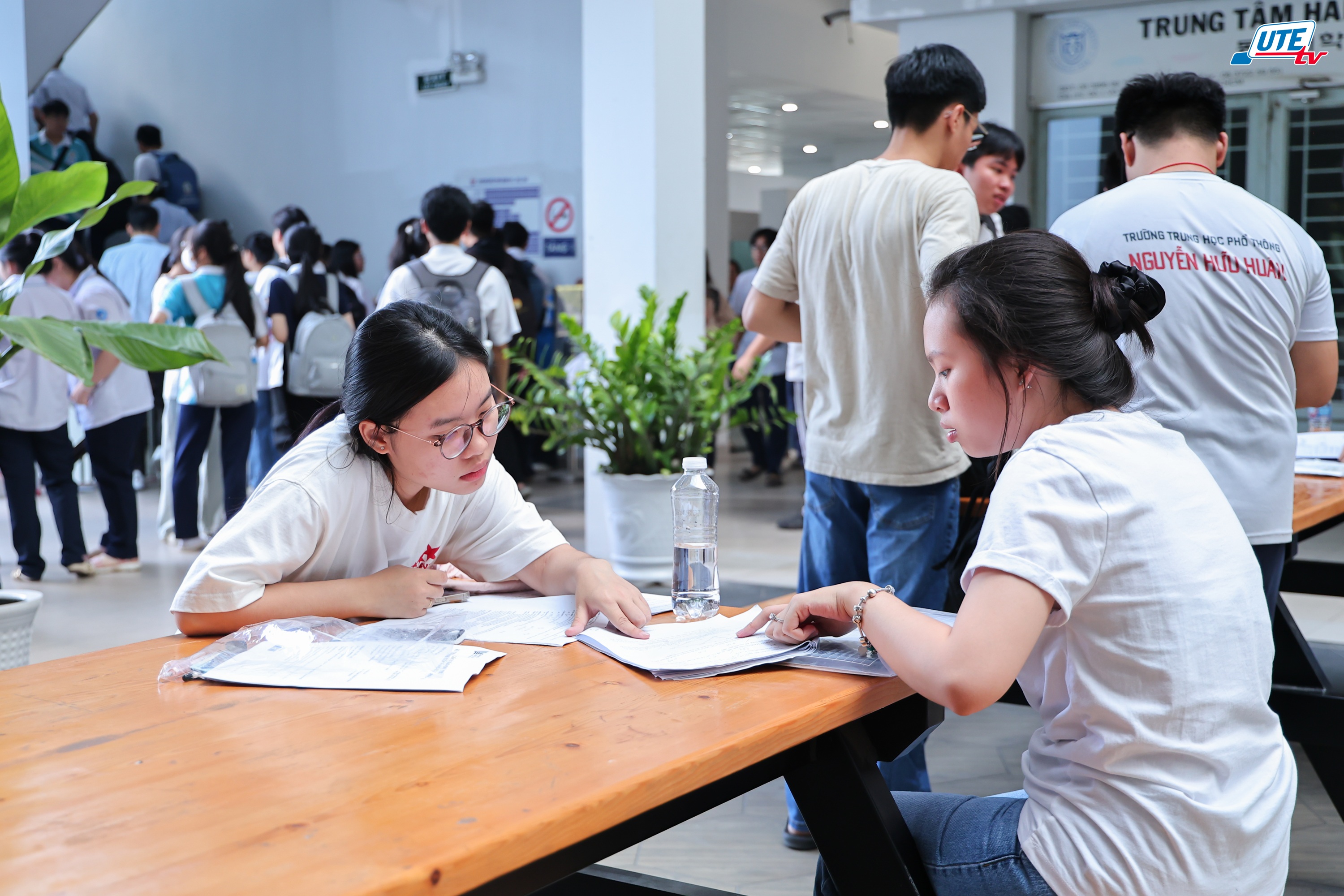Tại Trường ĐH Công nghệ Kỹ thuật TP.HCM, năm nay có khoảng 3.200 thí sinh dự thi với 97 phòng thi. Công tác chuẩn bị chào đón, hướng dẫn thí sinh rất chu đáo. Từ sáng sớm, thí sinh đã được phụ huynh đưa điểm thi rất đông. Các em đều đi thi trong tâm thế thoải mái, vui vẻ.