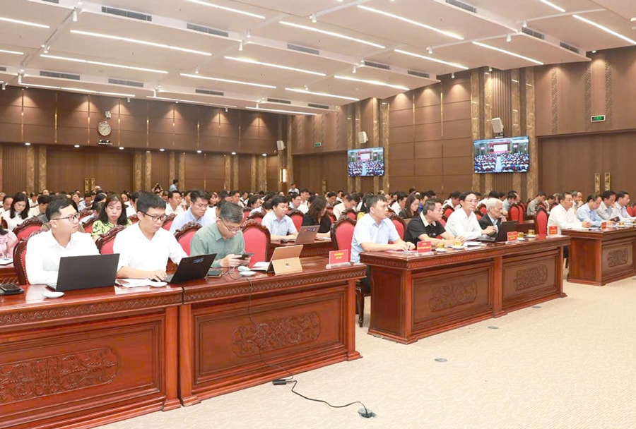 Bí thư Đảng ủy, Chủ tịch UBND, Chủ tịch Ủy ban Mặt trận Tổ quốc của 126 xã, phường trên địa bàn thành phố Hà Nội dự lớp tập huấn do Ban Tổ chức Thành ủy và Trường Đào tạo cán bộ Lê Hồng Phong phối hợp tổ chức, tháng 9-2025. Ảnh: Nguyên Anh